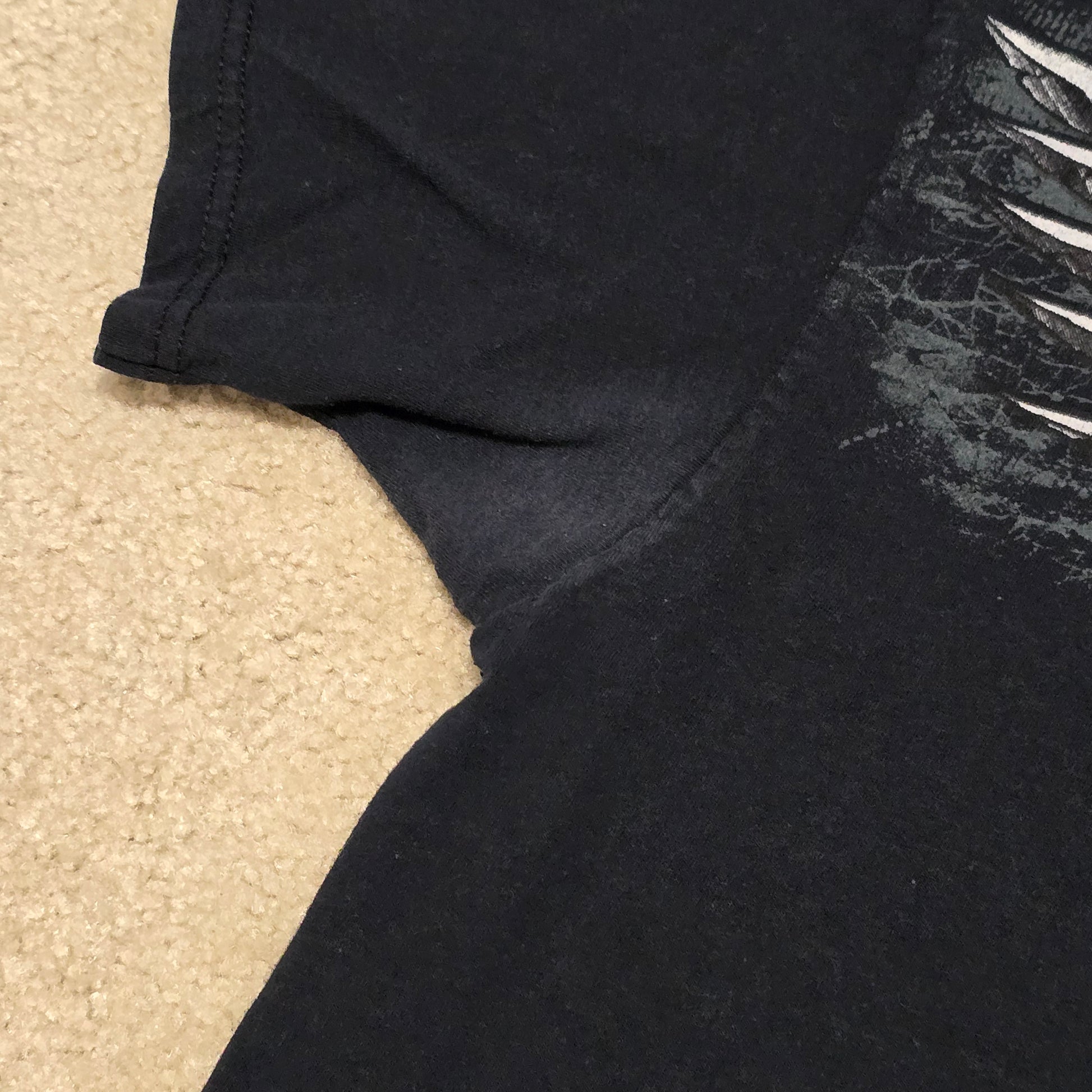 Condition: Pre-owned — soft and naturally faded with light deodorant staining under the arms (see photos). No holes or tears. Still has a great look and strong graphic.
