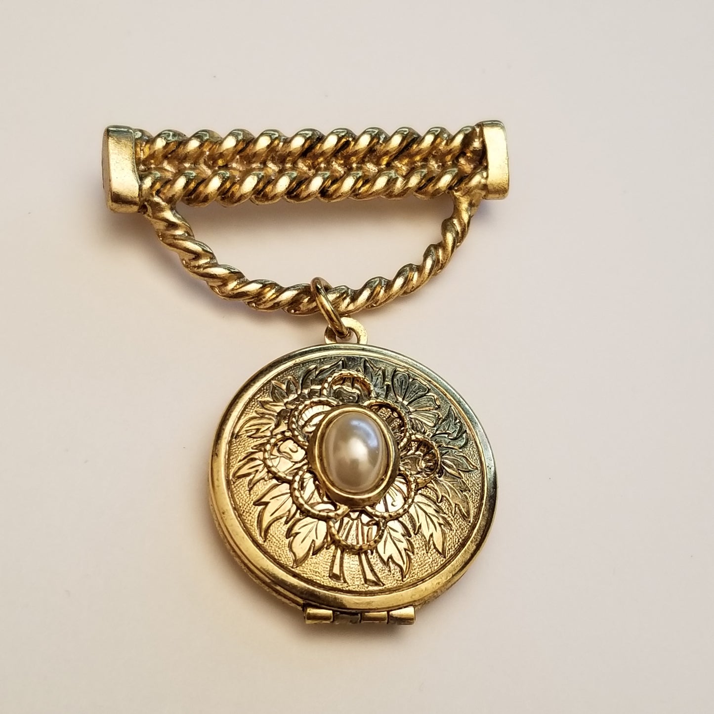 Unlock the past with this captivating Vintage Gold Tone Locket Brooch! This timeless piece is perfect for a touch of vintage-inspired charm, featuring a stunning gold tone for a glamorous finish. Step into history and create your own beautiful story!