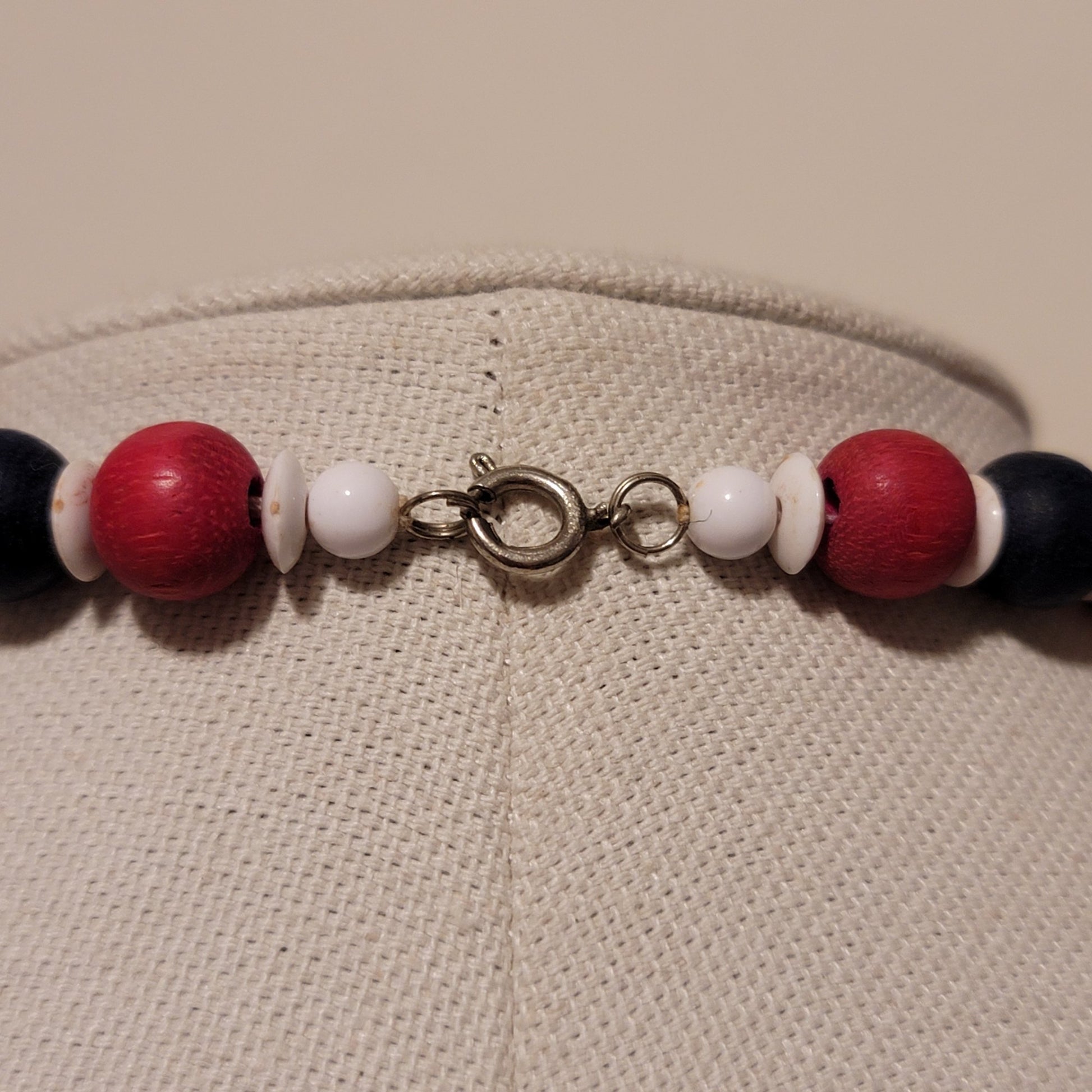 Vintage Red White & blue Wood bead Necklace
