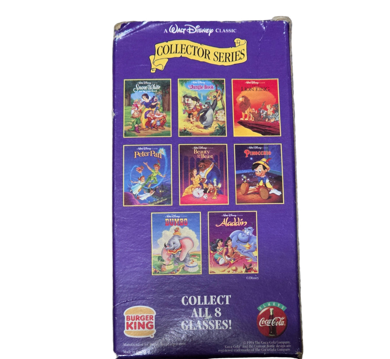 Vintage 1992 McDonald’s Walt Disney Collector’s Glass, part of the Disney Classics promotional glass series. Released during McDonald’s 1990s partnership with Disney, each glass showcased detailed wrap-around artwork celebrating scenes and characters from beloved animated films.