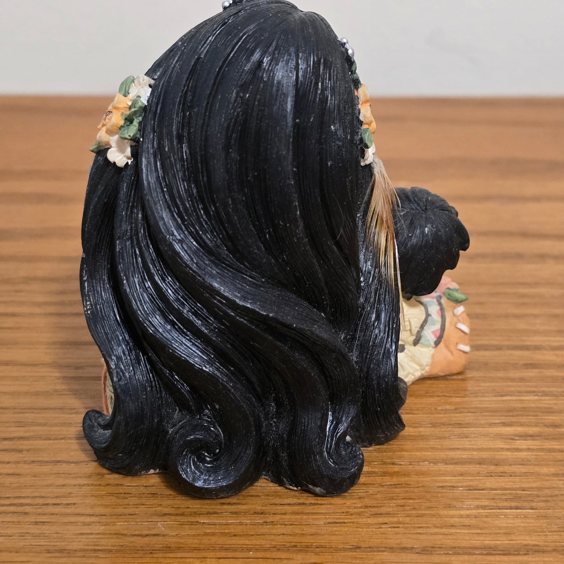 The mother figure wears a detailed patterned dress with real feather accents in her hair, while the children hold delicate floral bouquets. Each detail reflects Enesco’s signature craftsmanship and Hahn’s heartwarming artistry.