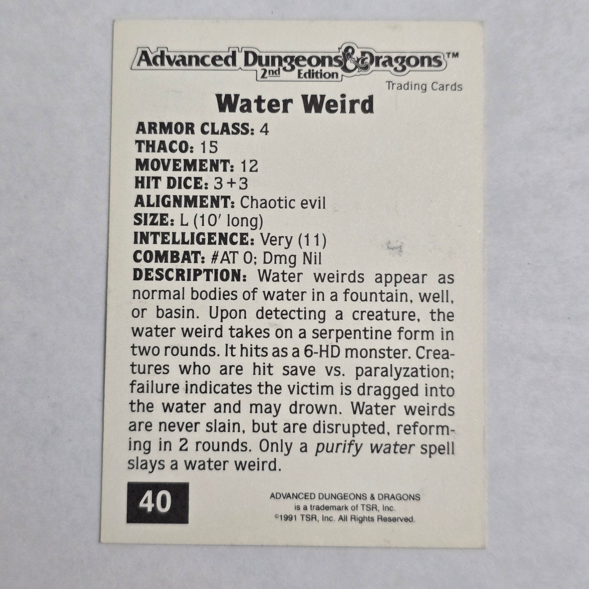 Official Advanced Dungeons & Dragons 2nd Edition trading card featuring the Water Weird, card #40 from the 1992 Gold Border Series.
