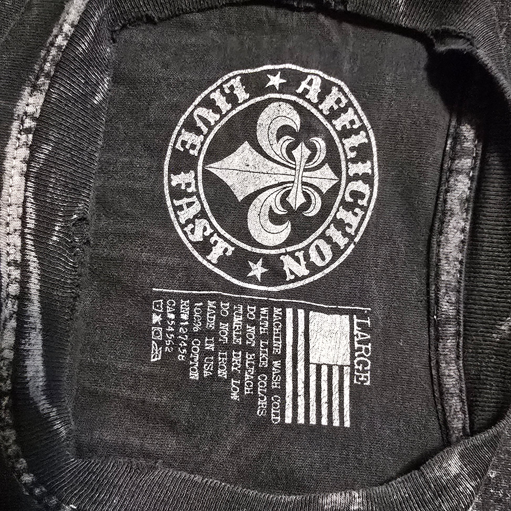 High-quality thick cotton, contrast stitching, and detailed sleeve patches make this a standout Affliction piece for collectors and fans of MMA, biker, and grunge streetwear aesthetics.