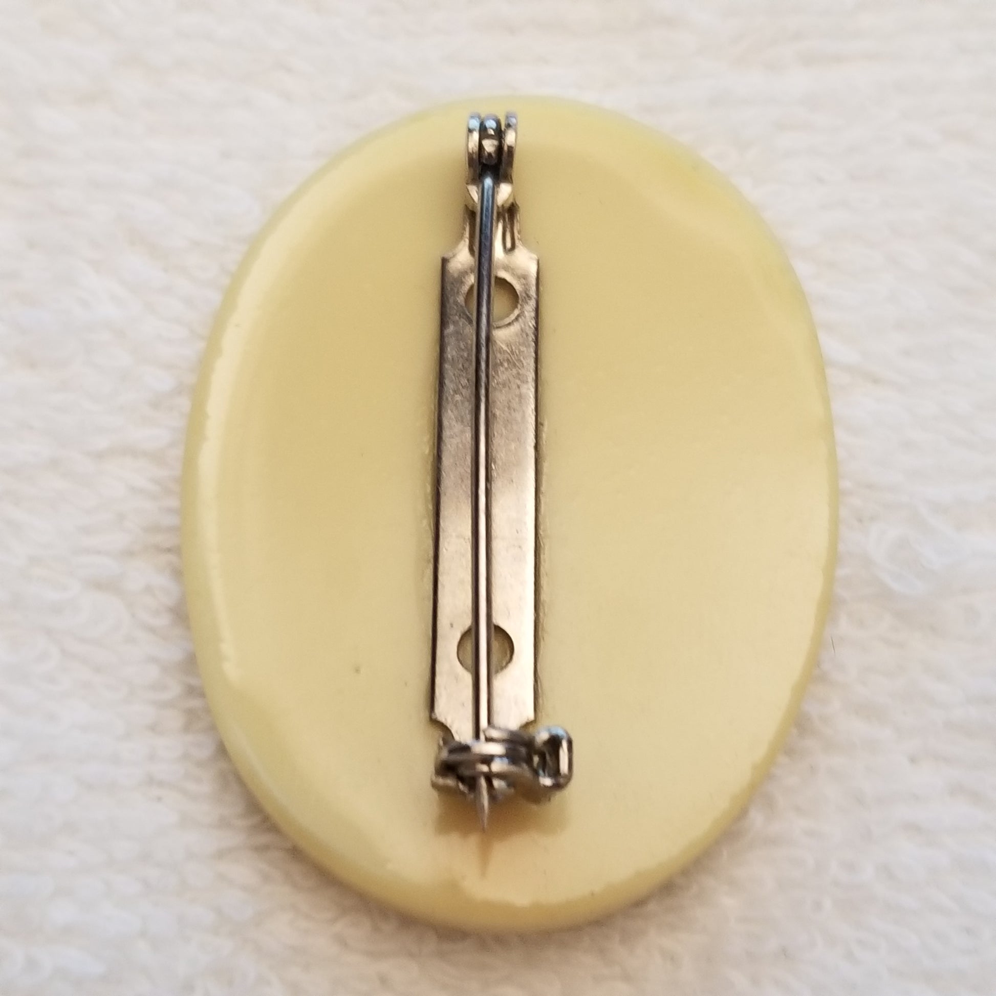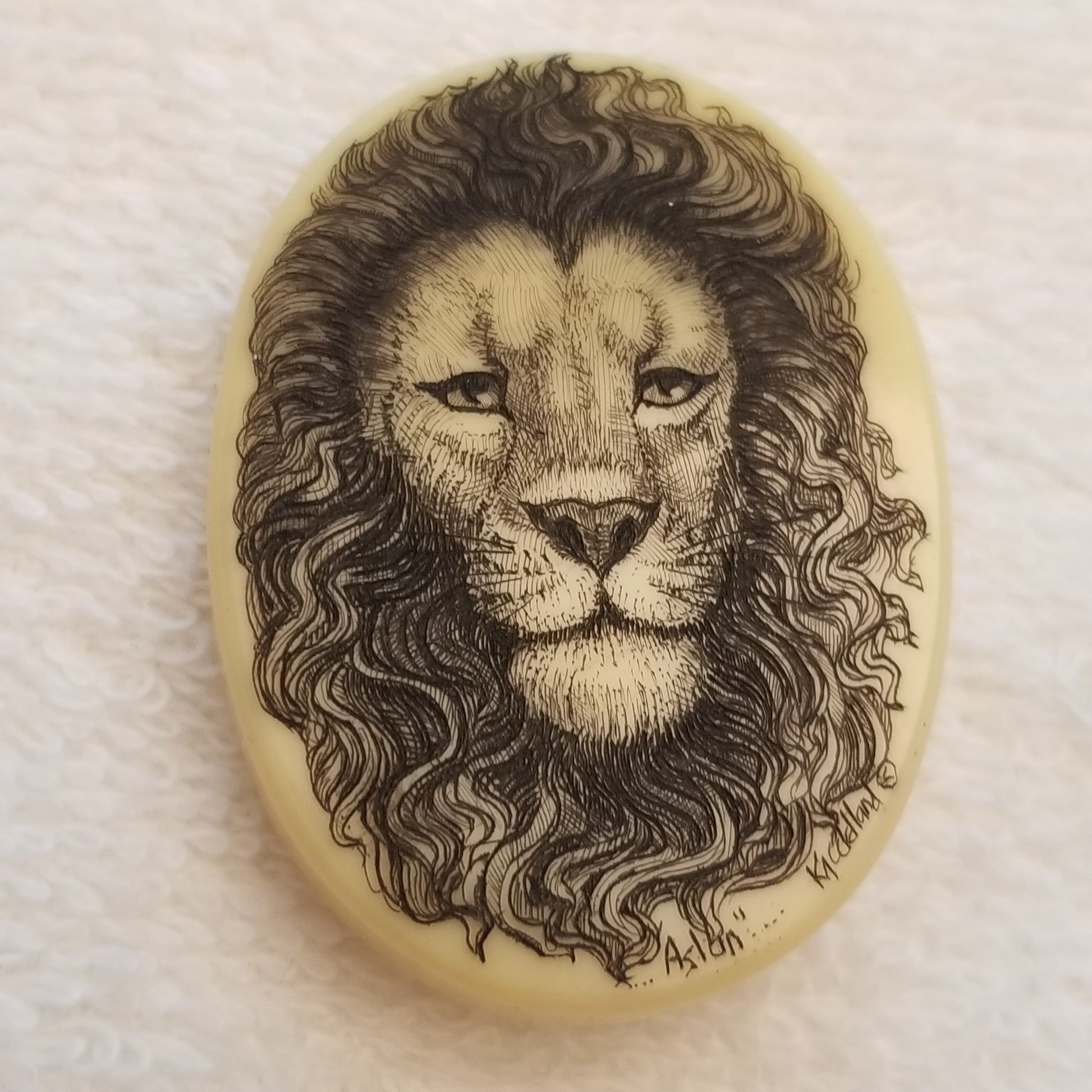 "Aslan" Carved Lion Resin Scrimshaw Oval Brooch
