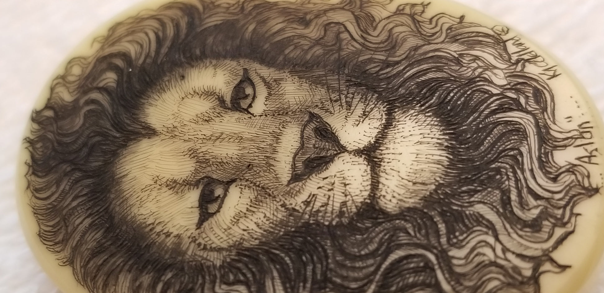 carved on resin, Scrimshaw artist signed by K McClelland by Tree of Life Artworks 1.5"x1.1 |