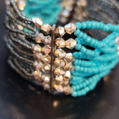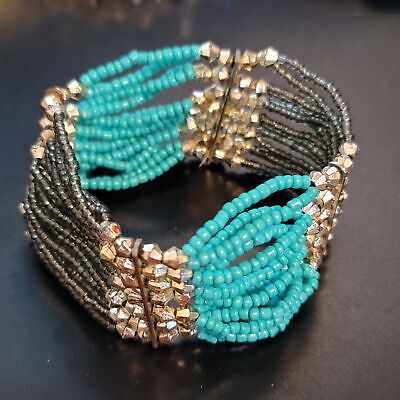 Black and Teal Beaded Stretch Bracelet