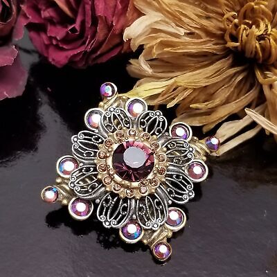 multi-colored rhinestones, Silver & Gold tine. In good preowned wearable condition. Doesn't have any of the rhinestones missing. Signed Chico's on the back