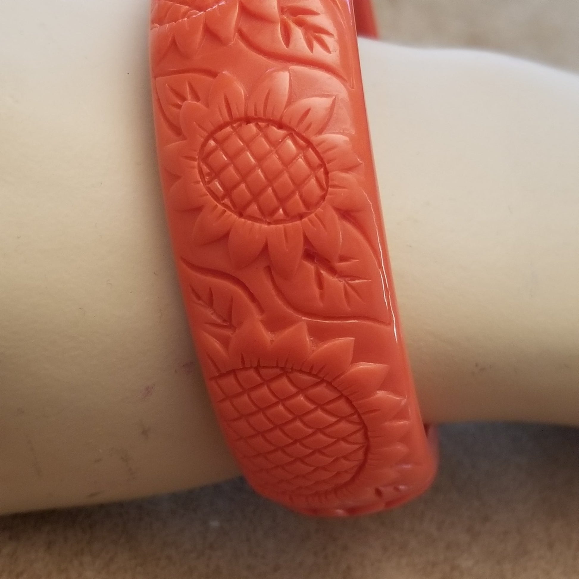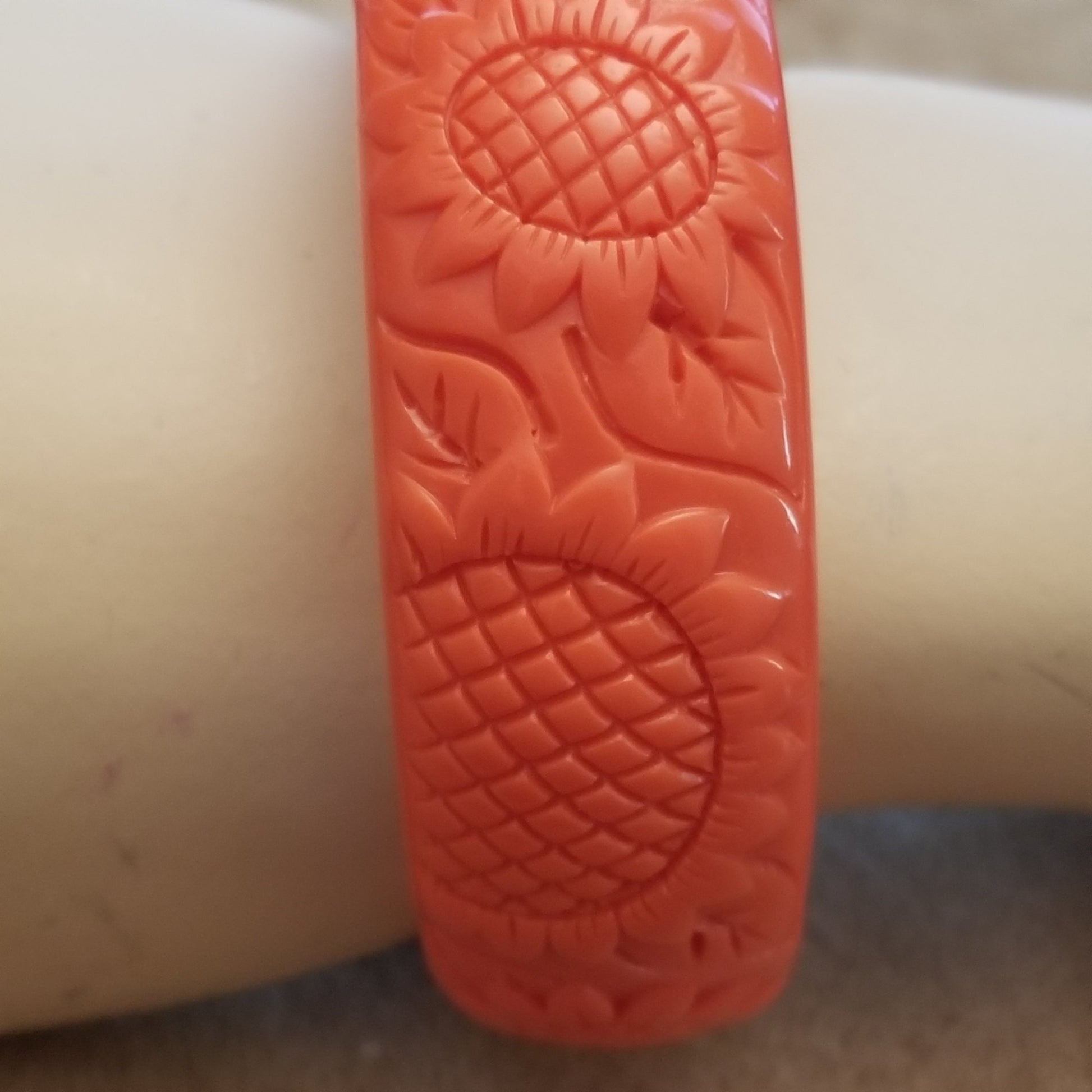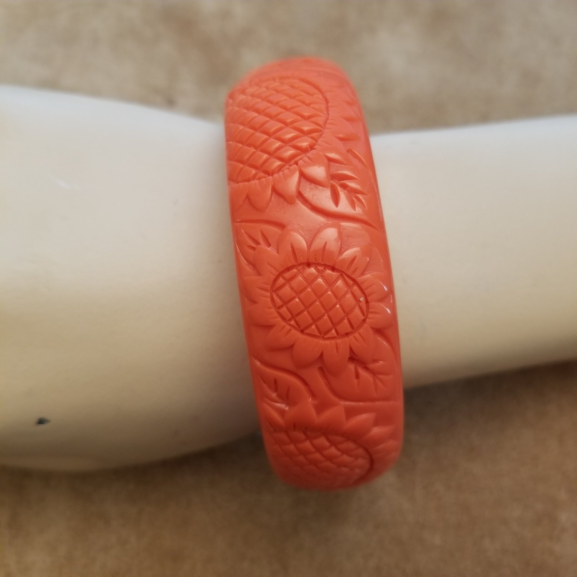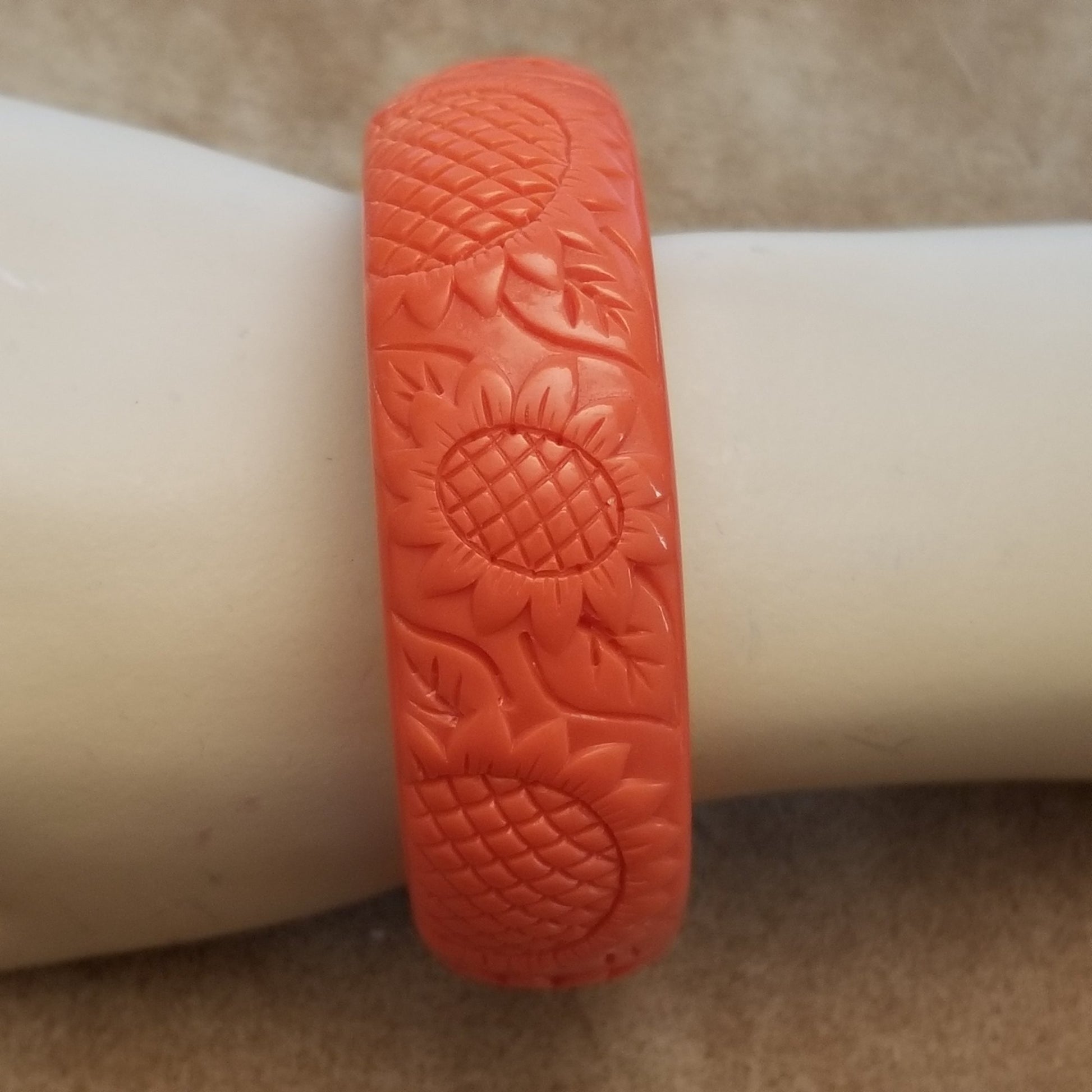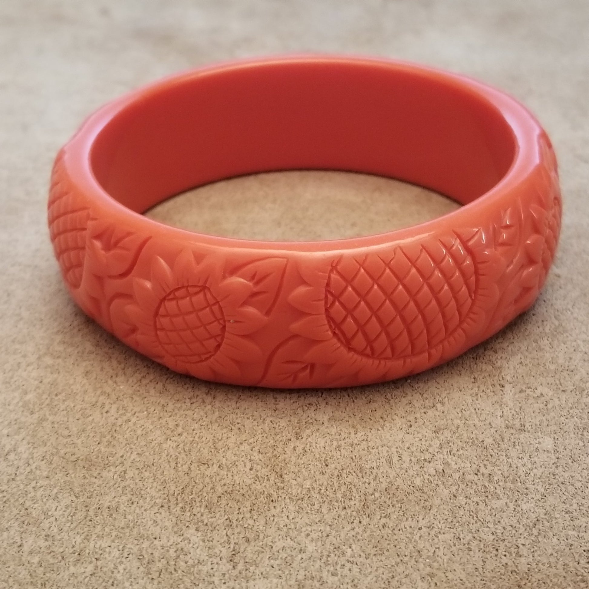 Cute Vintage Orange Lucite Sunflower Bangle Bracelet