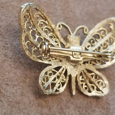 Condition: Excellent vintage condition, light wear consistent with age. Cute little filigree butterfly, has a small simulated pear bead on top. Gold tone