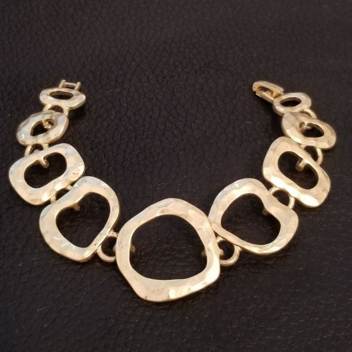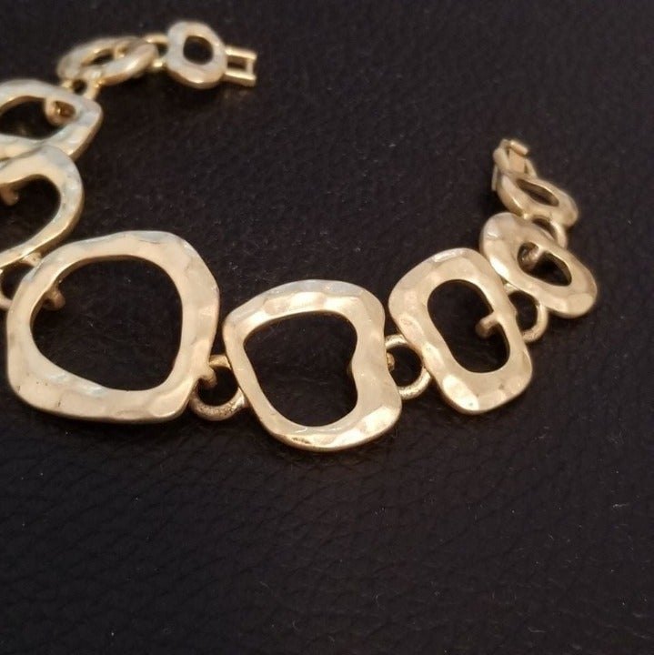Gold Tone Lia Sophia Hammered Matte Graduated Link Bracelet