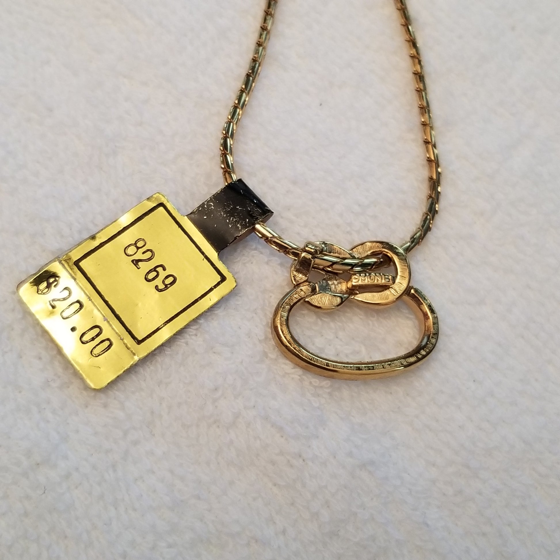 Condition: in good preowned wearable condition. still has the original tag which has the price and i think the item number. pendant has rhinestones. none are missing. just some slight discoloration.
