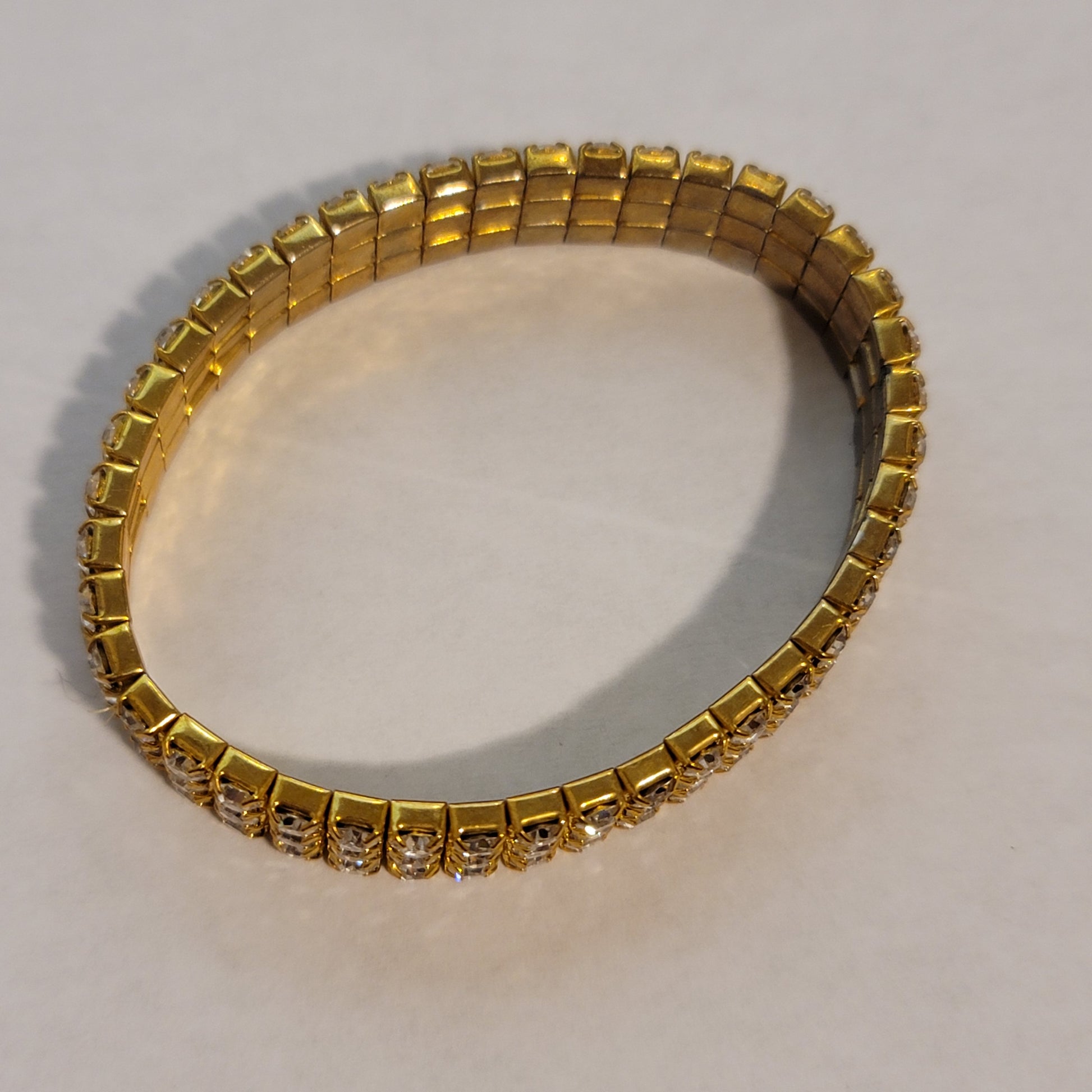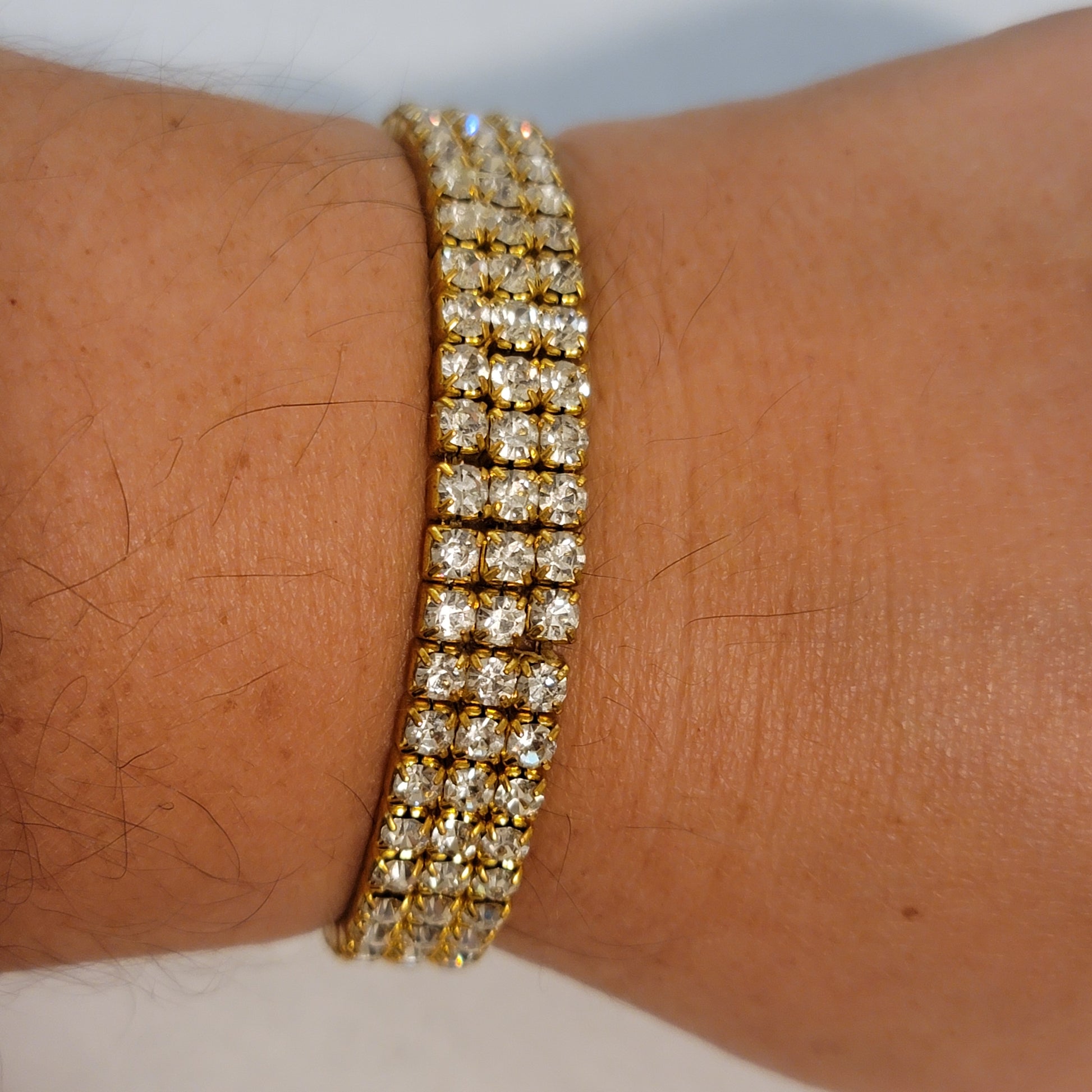 Has clear rhinestones in pronged settings. Bracelet has minimal signs of wear