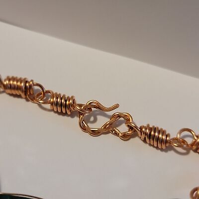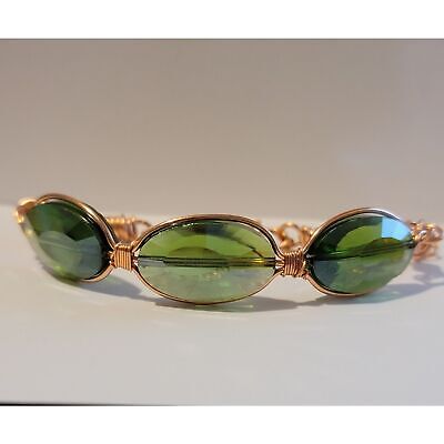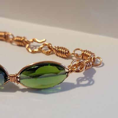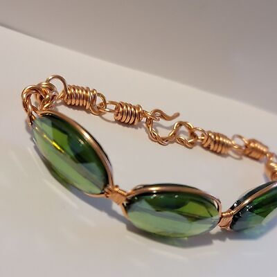 Made with copper wire, wrapped around Green faceted bracelet. hook is also handmade.