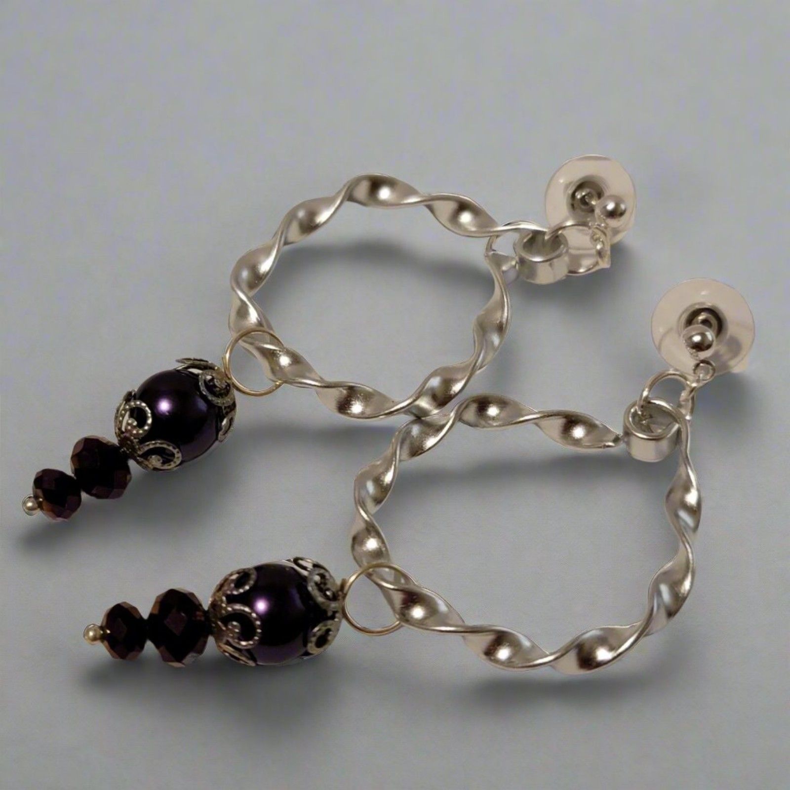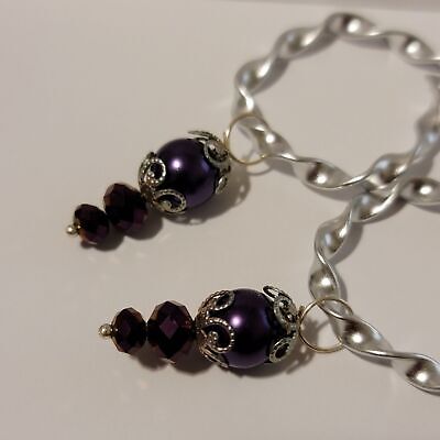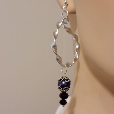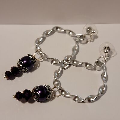 Handmade Twisted Silver And Purple Hoop Dangle Earrings