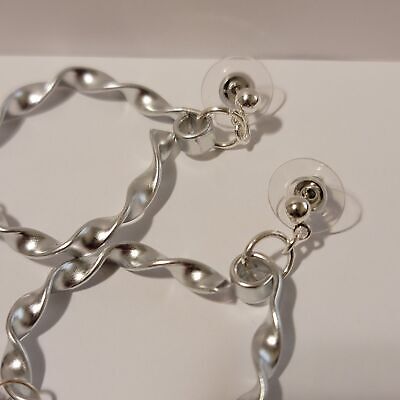 About 3 1/4" drop, silver tone wire. twisted with a hand held tool.