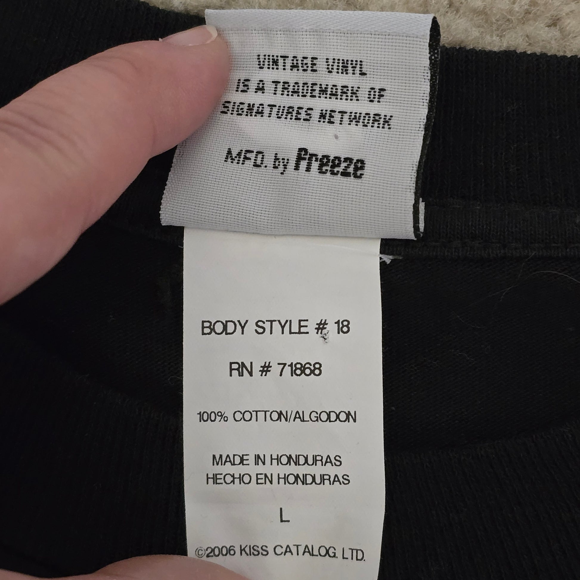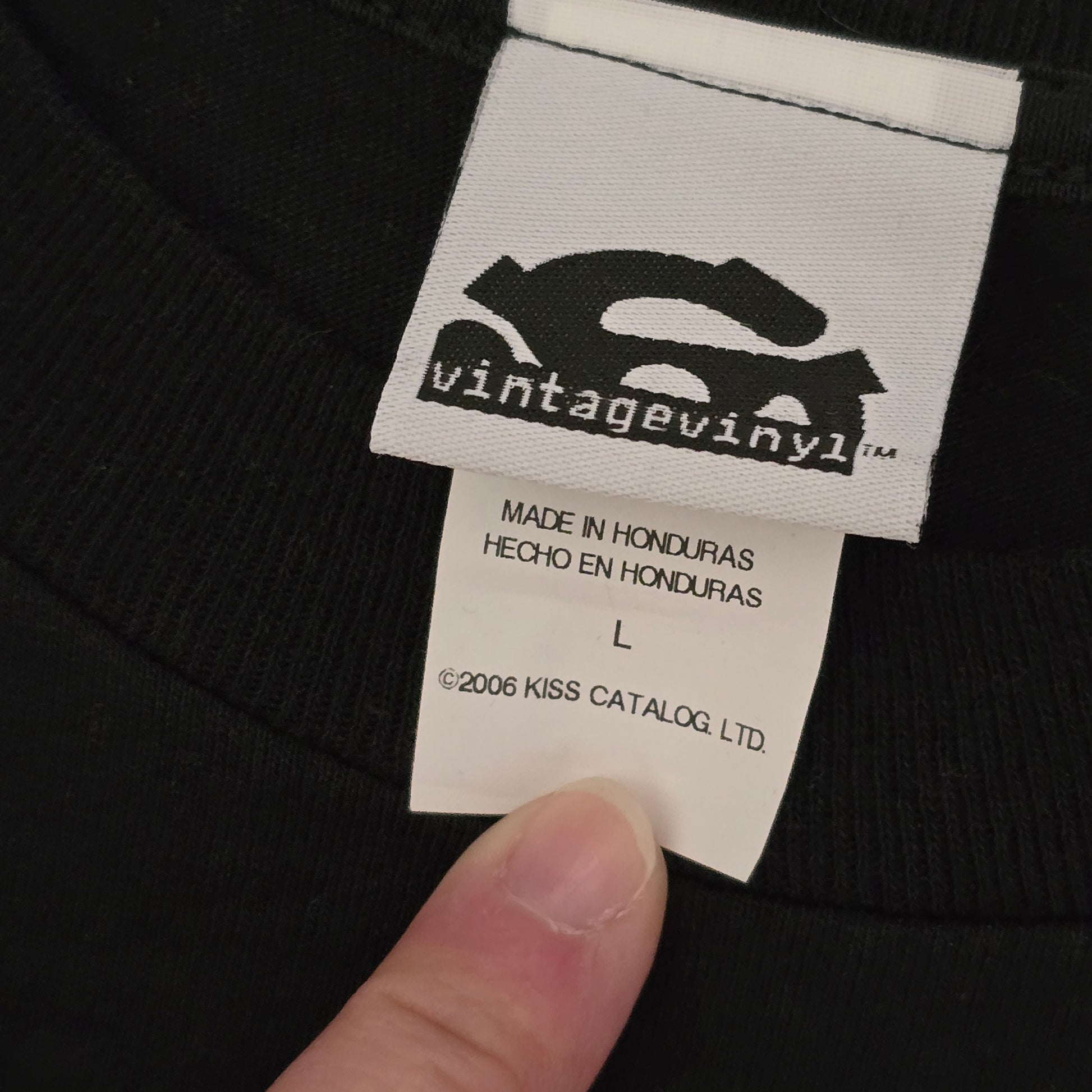 Mid-2000s KISS Vintage Vinyl shirts are sought after for their vivid graphics and durable cotton construction. This 2006 Psycho Circus design captures one of the band’s most iconic comic-style looks and is perfect for fans, collectors, or vintage rock tee lovers.