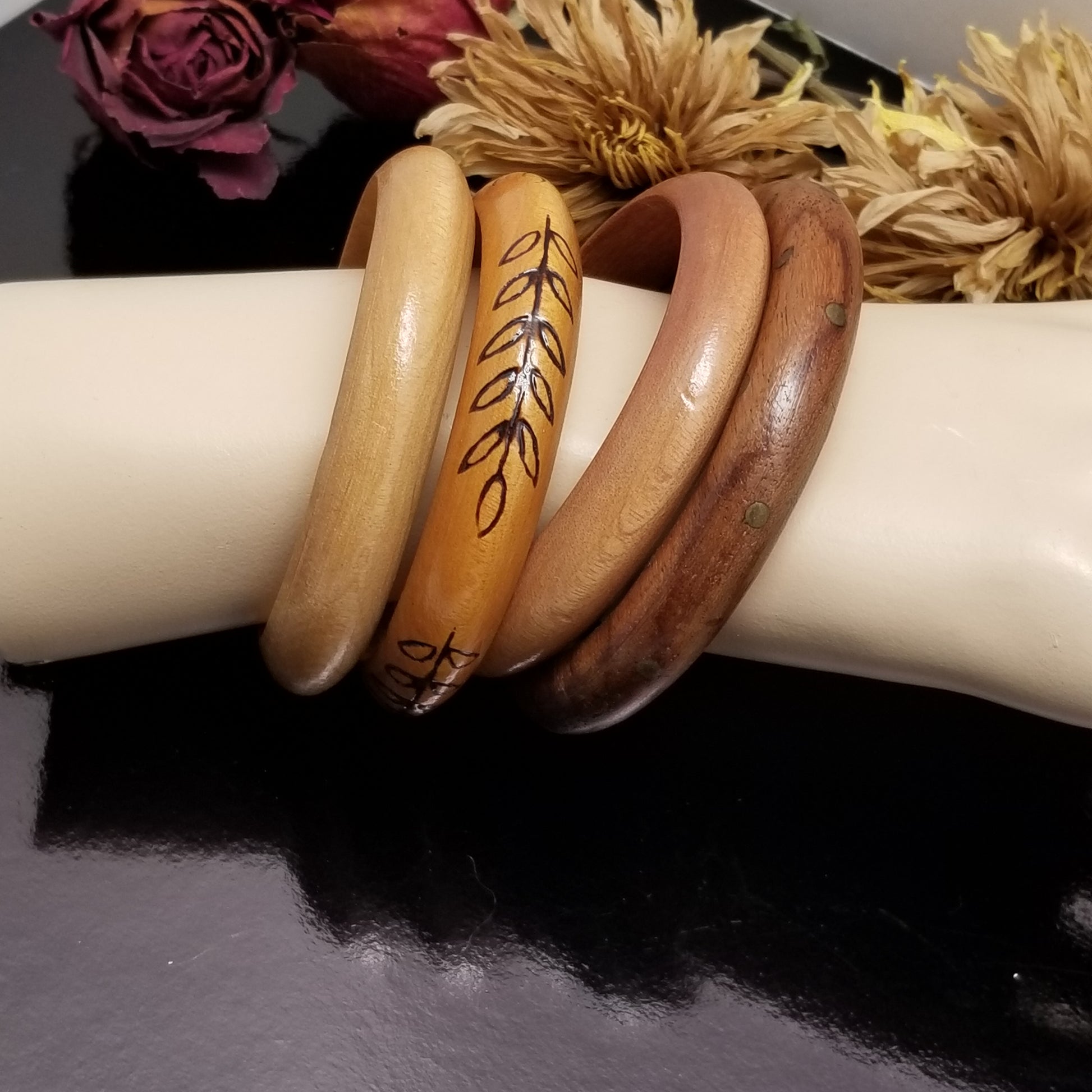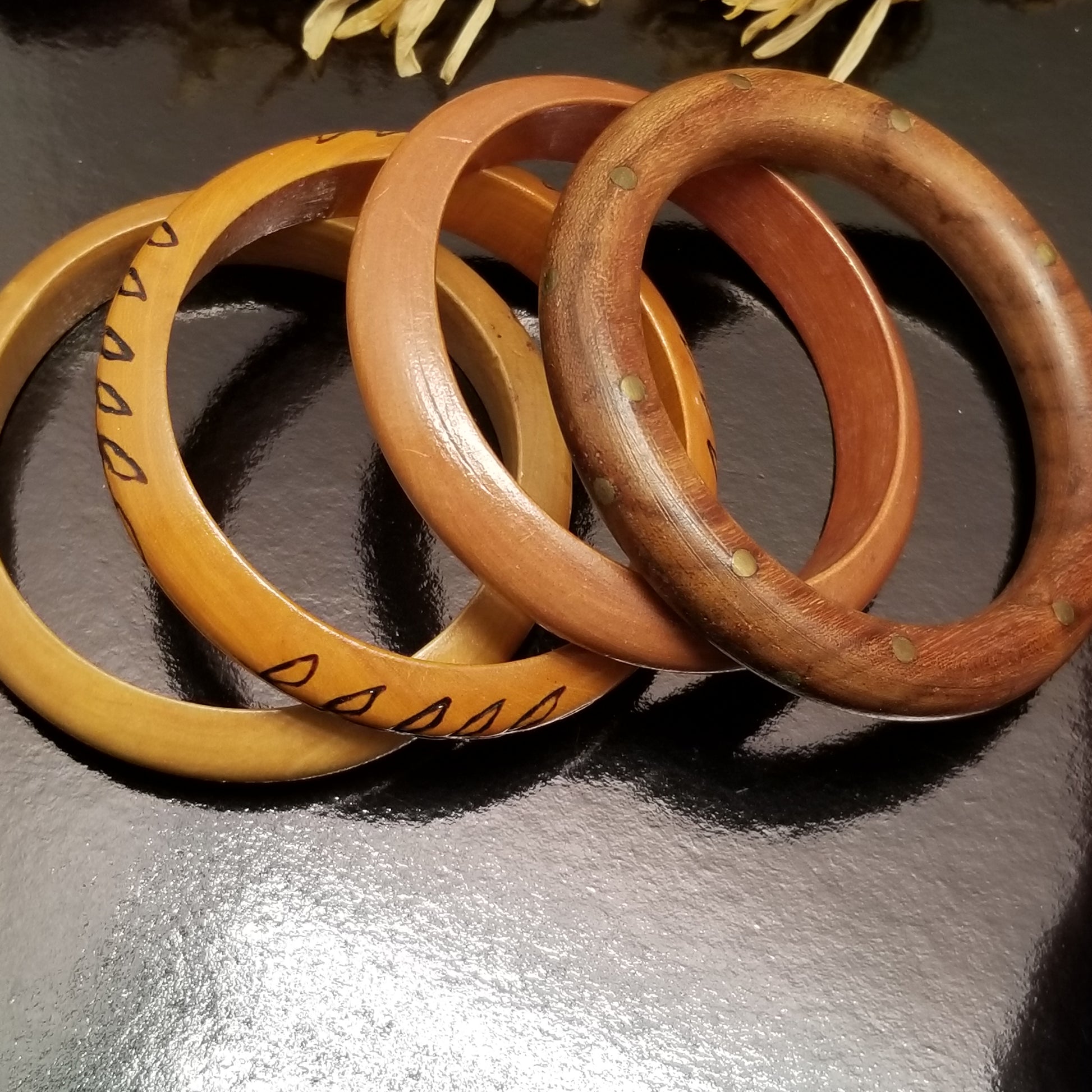 Lot of 4 Wooden Bangle Bracelets