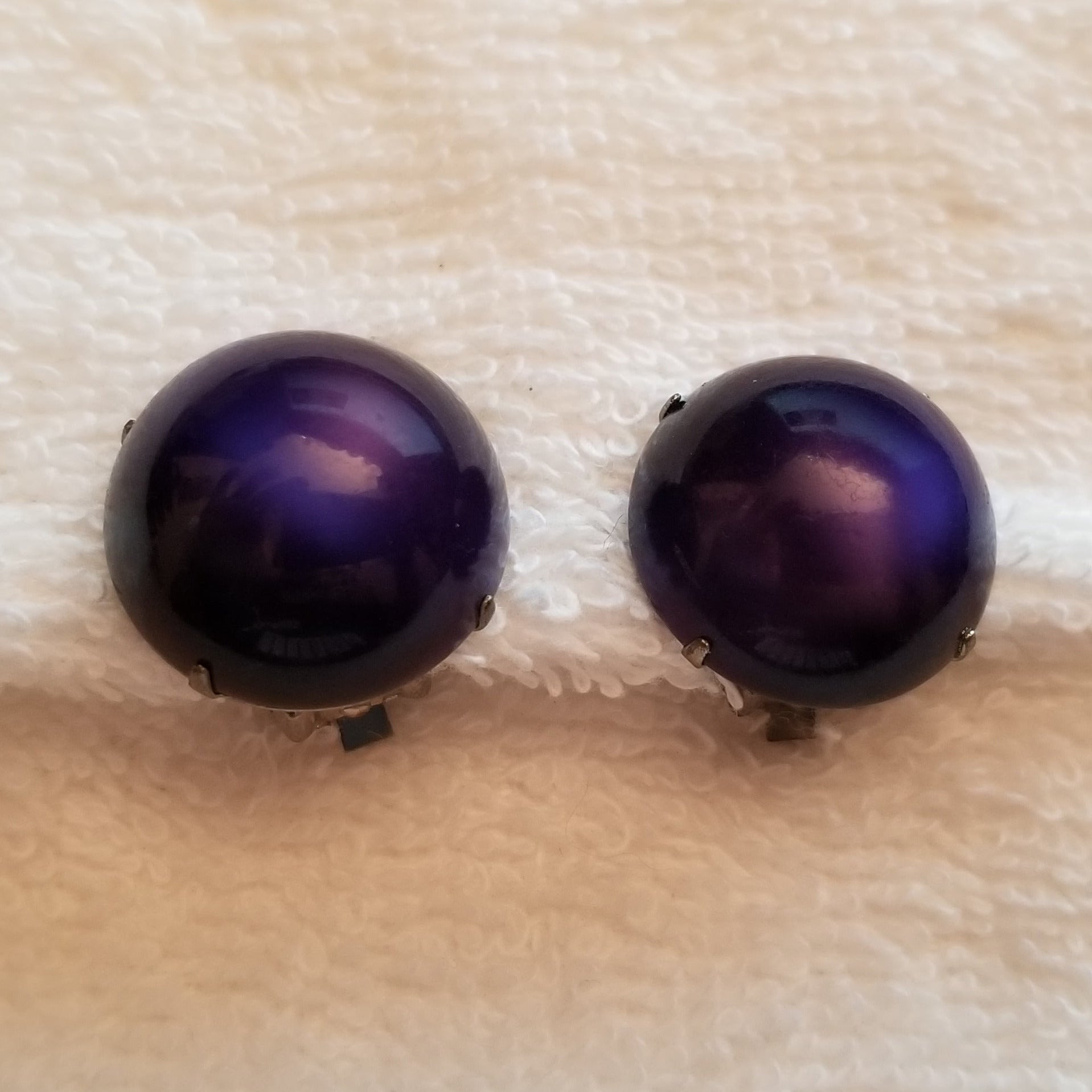 Experience a touch of vintage elegance with these breathtaking Purple Cabochon Clip On Earrings, a timeless piece that adds a graceful flair to your style. The luxuriously crafted cabochons create a captivating iridescence, perfect for adding a hint of sophistication to your wardrobe.