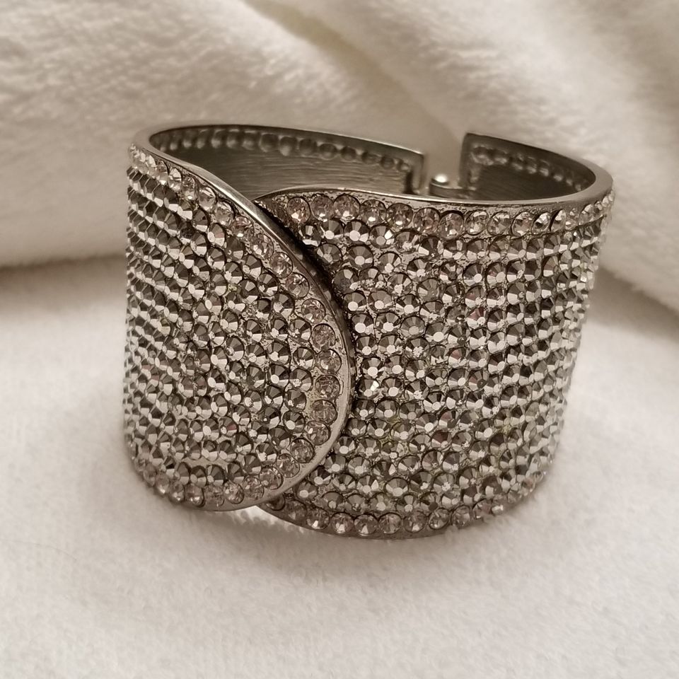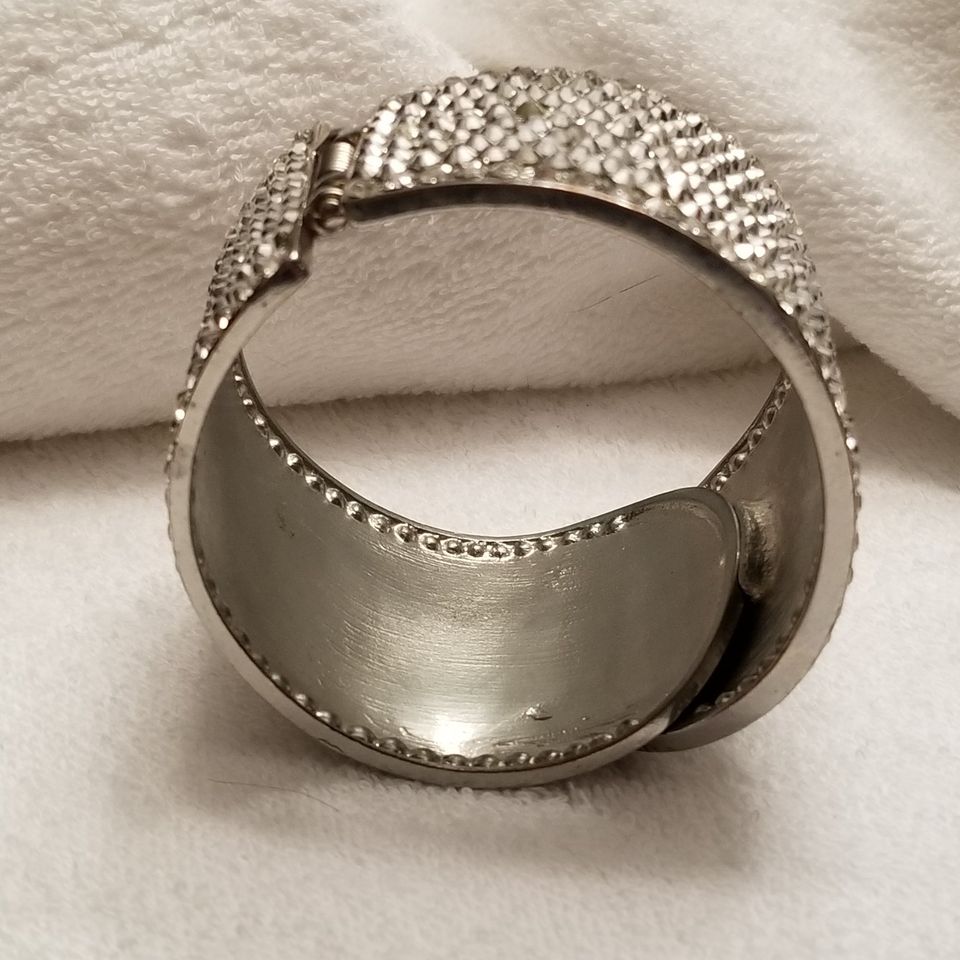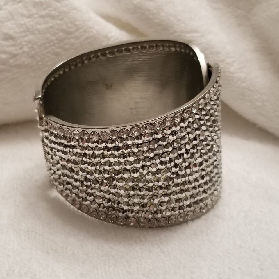 Silver Tone Rhinestone Hinge Bracelet 7" No missing rhinestones, hinged. In good preowned wearable condition