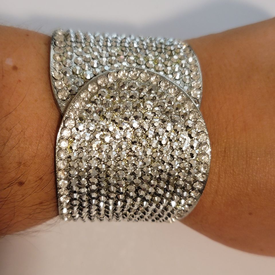 Silver Tone Rhinestone Hinge Bracelet