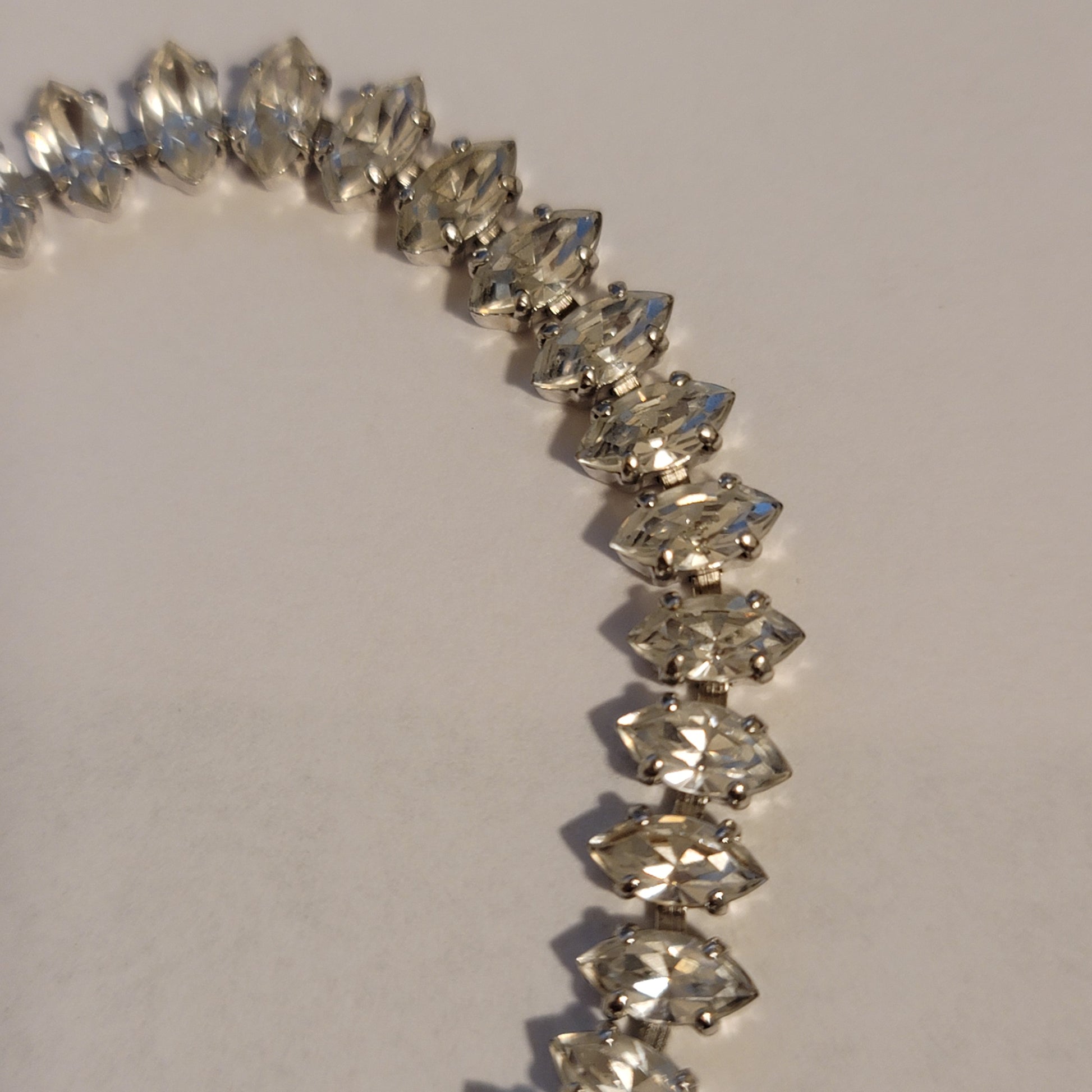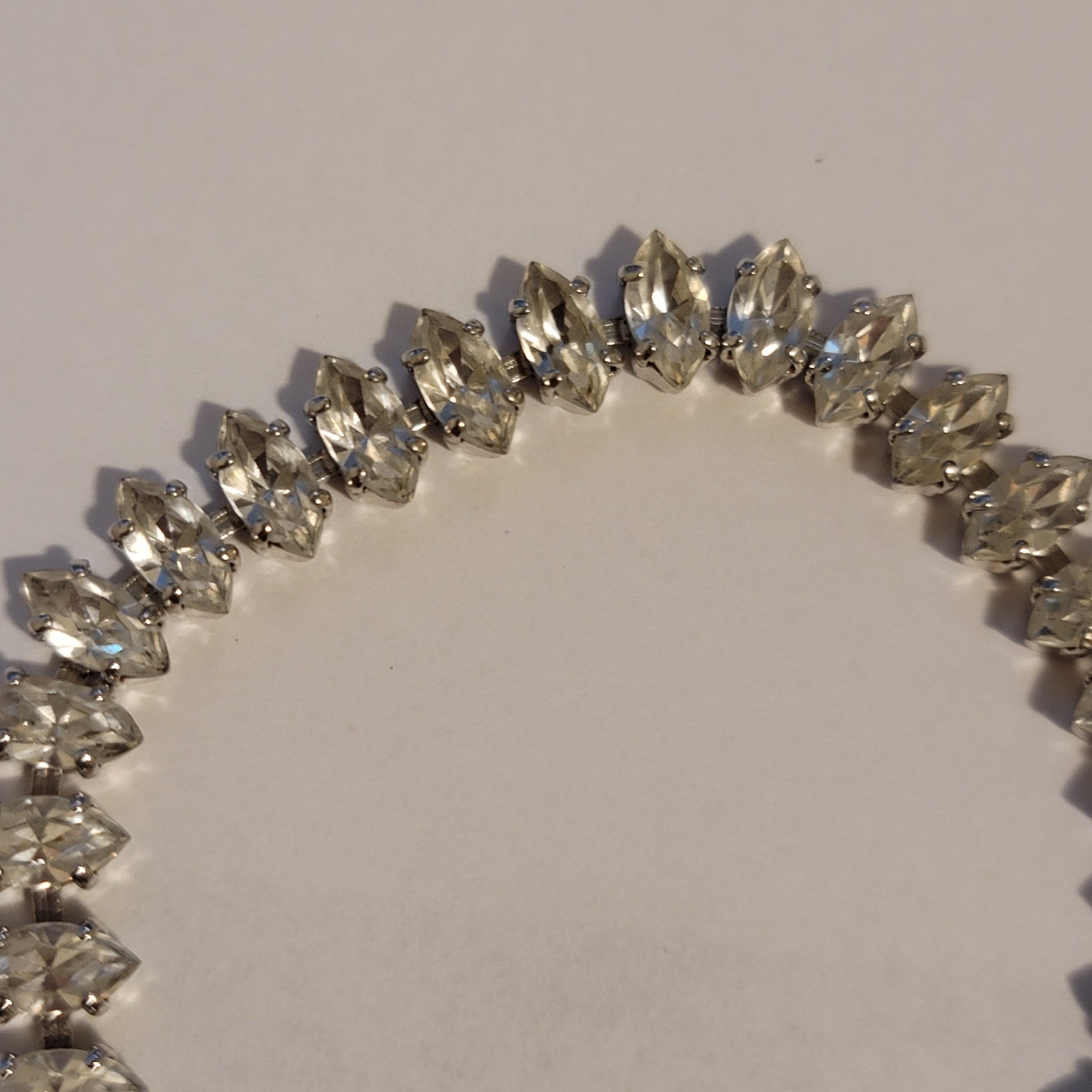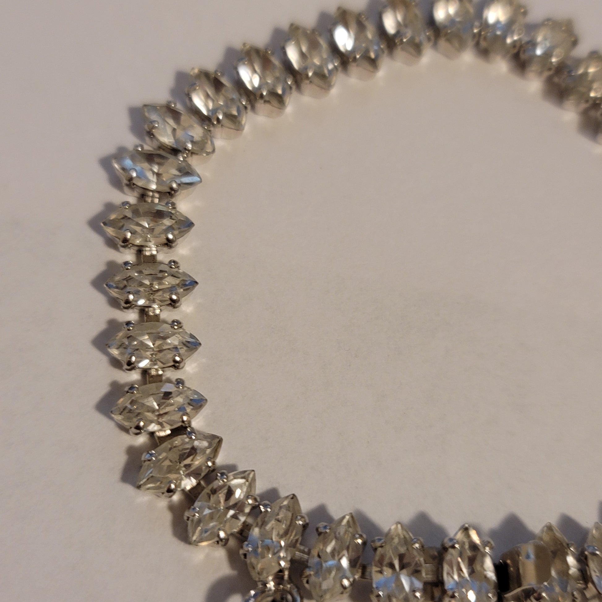 foil back rhinestones. B. David was know for its high quality costume jewelry. Each rhinestone is in a pronged setting. Has the security chain