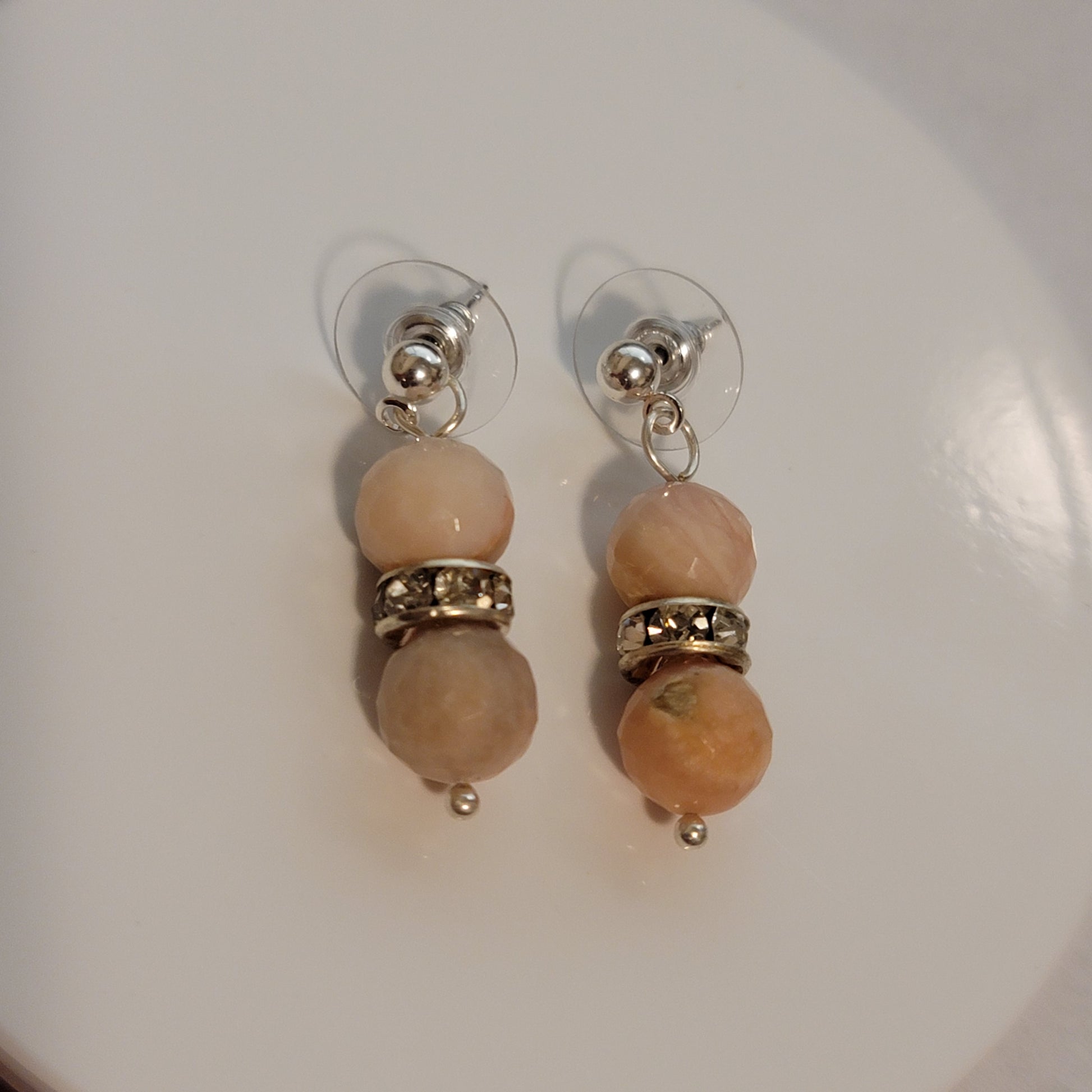 Handmade with Moonstone faceted beads, has a silver tone rhinestone spacer.