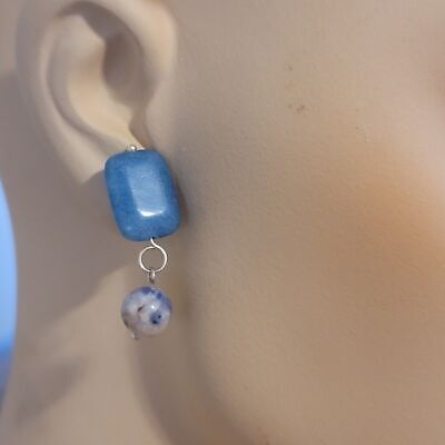 Handmade using a blue glass bead and 8mm K2 Stone with stainless steal stud back for pierced ears.