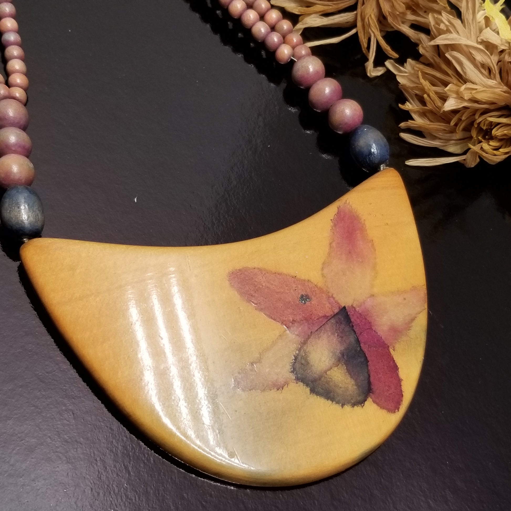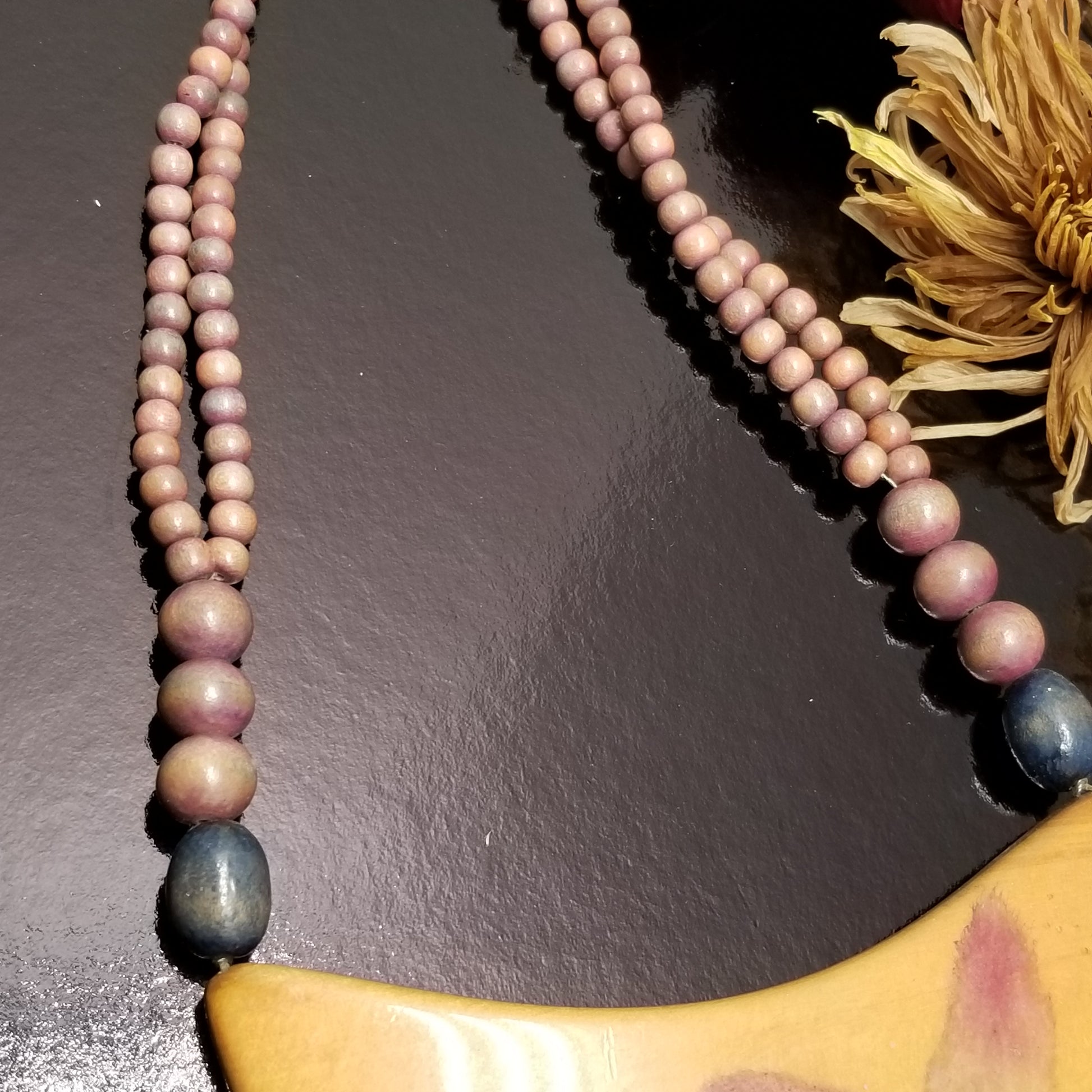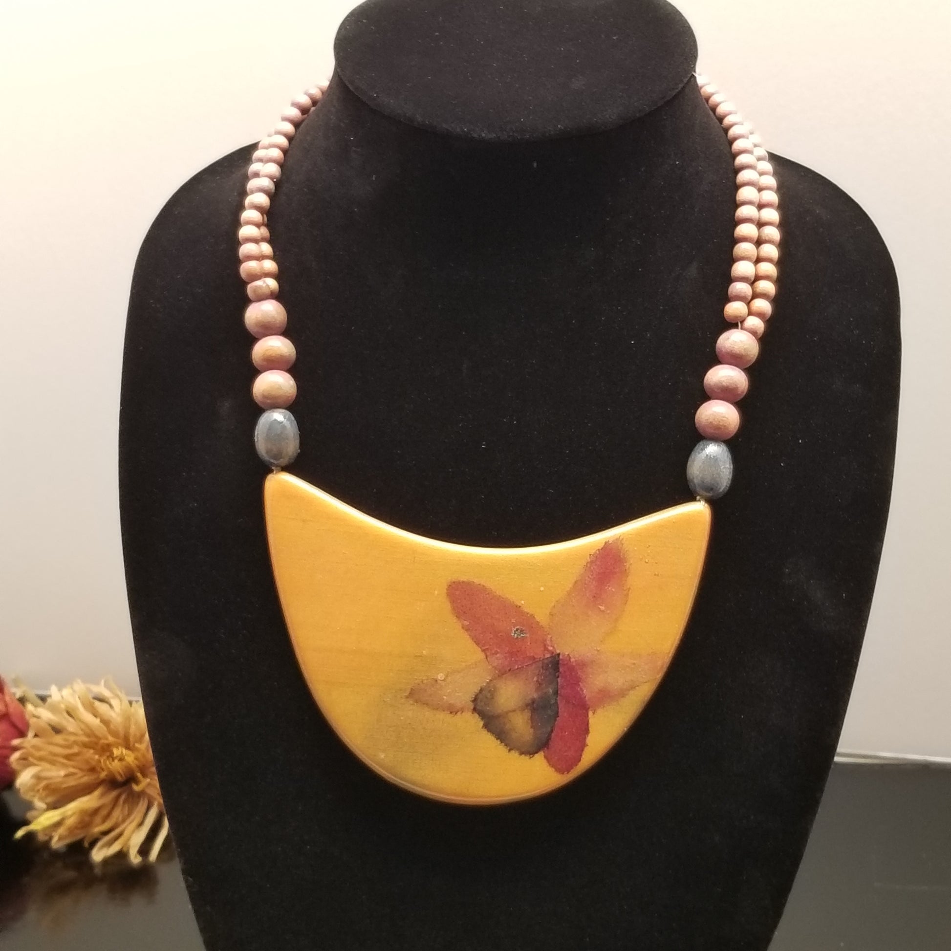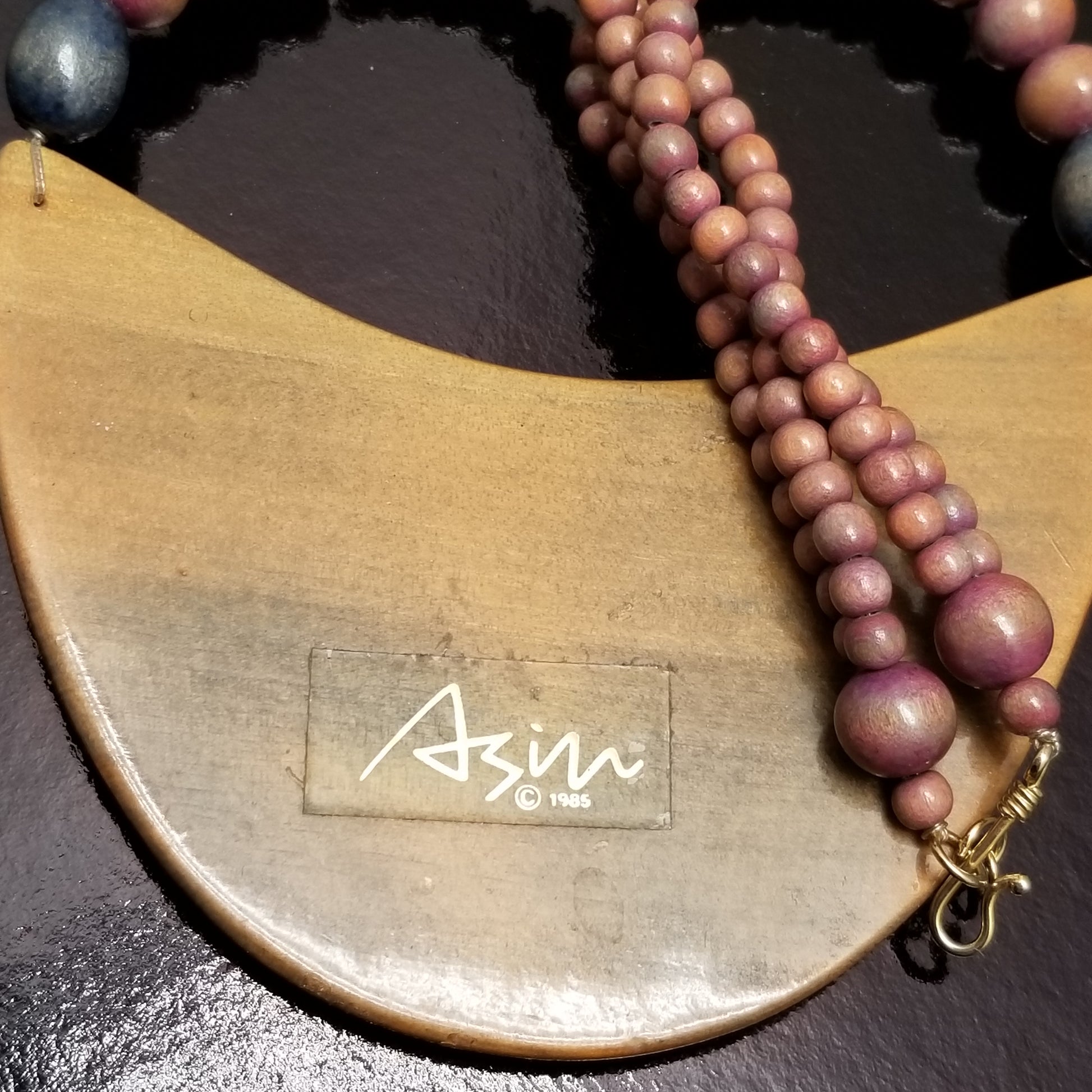Vintage 1985 Asin Flower Wooden Bib Necklace