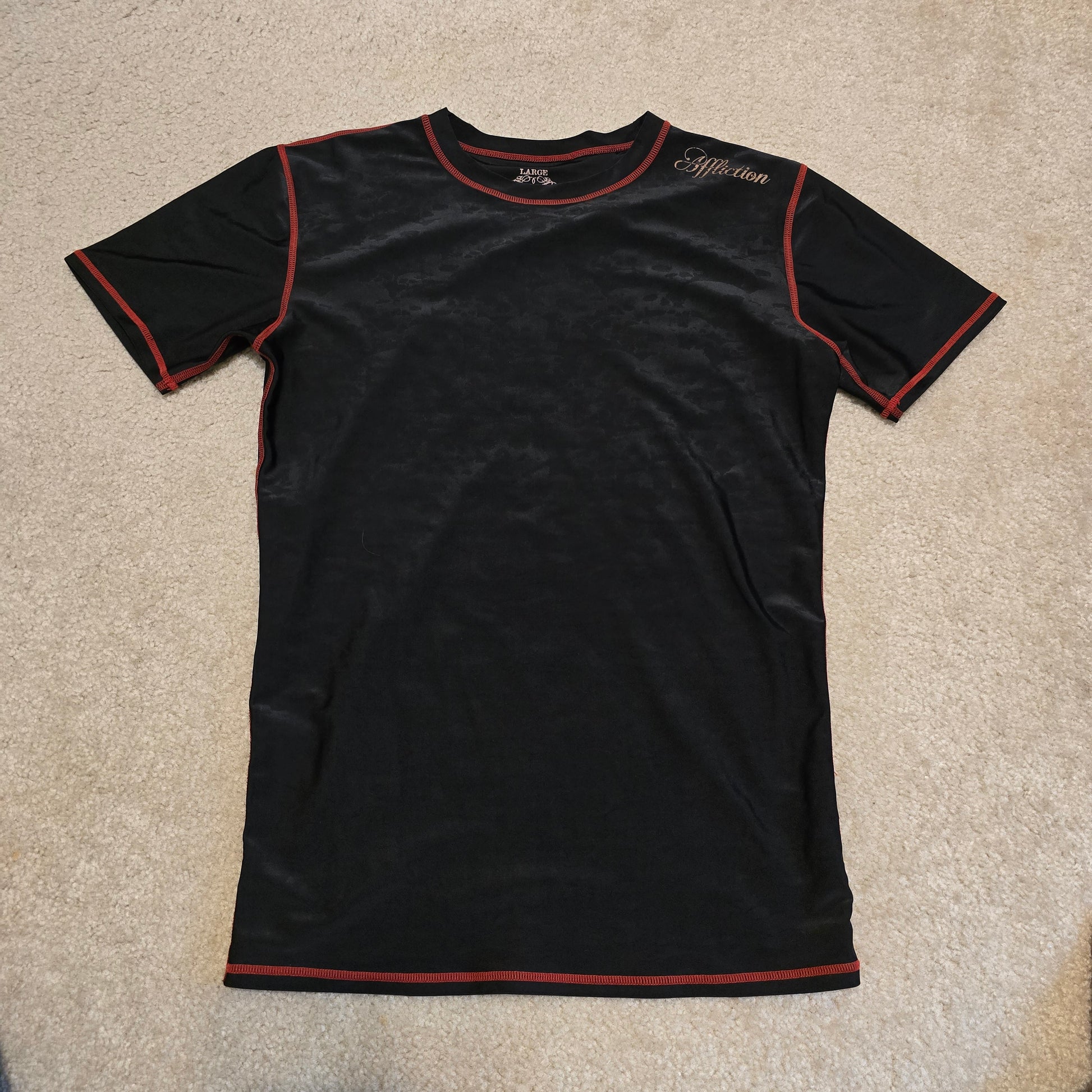 Vintage Affliction Black Red Trim Stretch Shirt Size Large Made in Taiwan