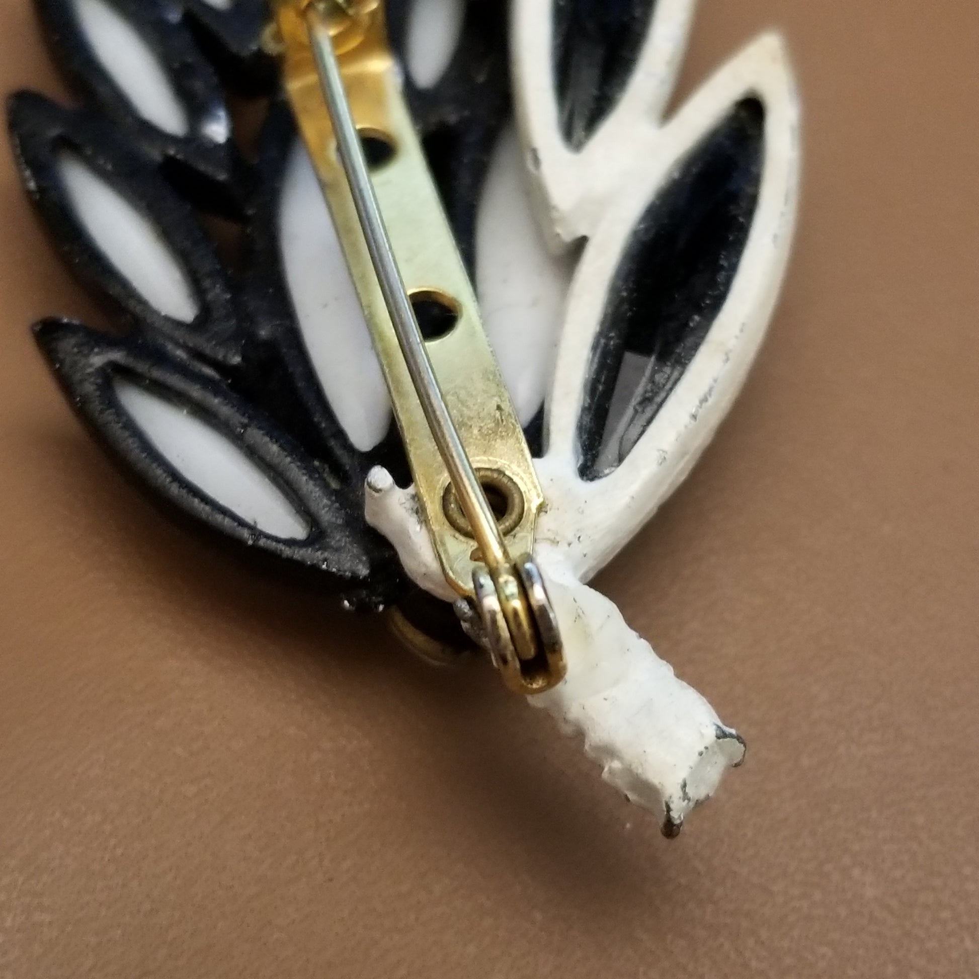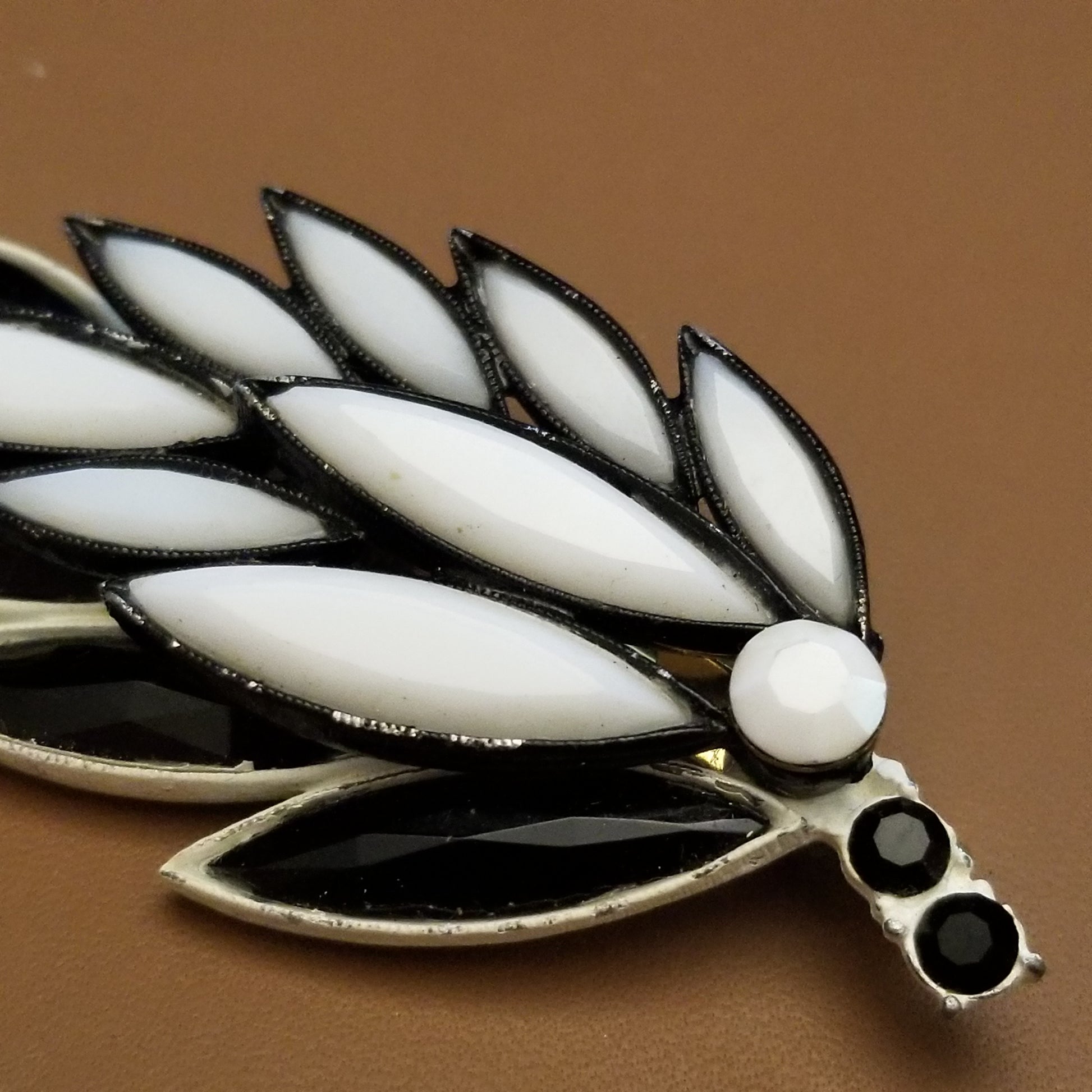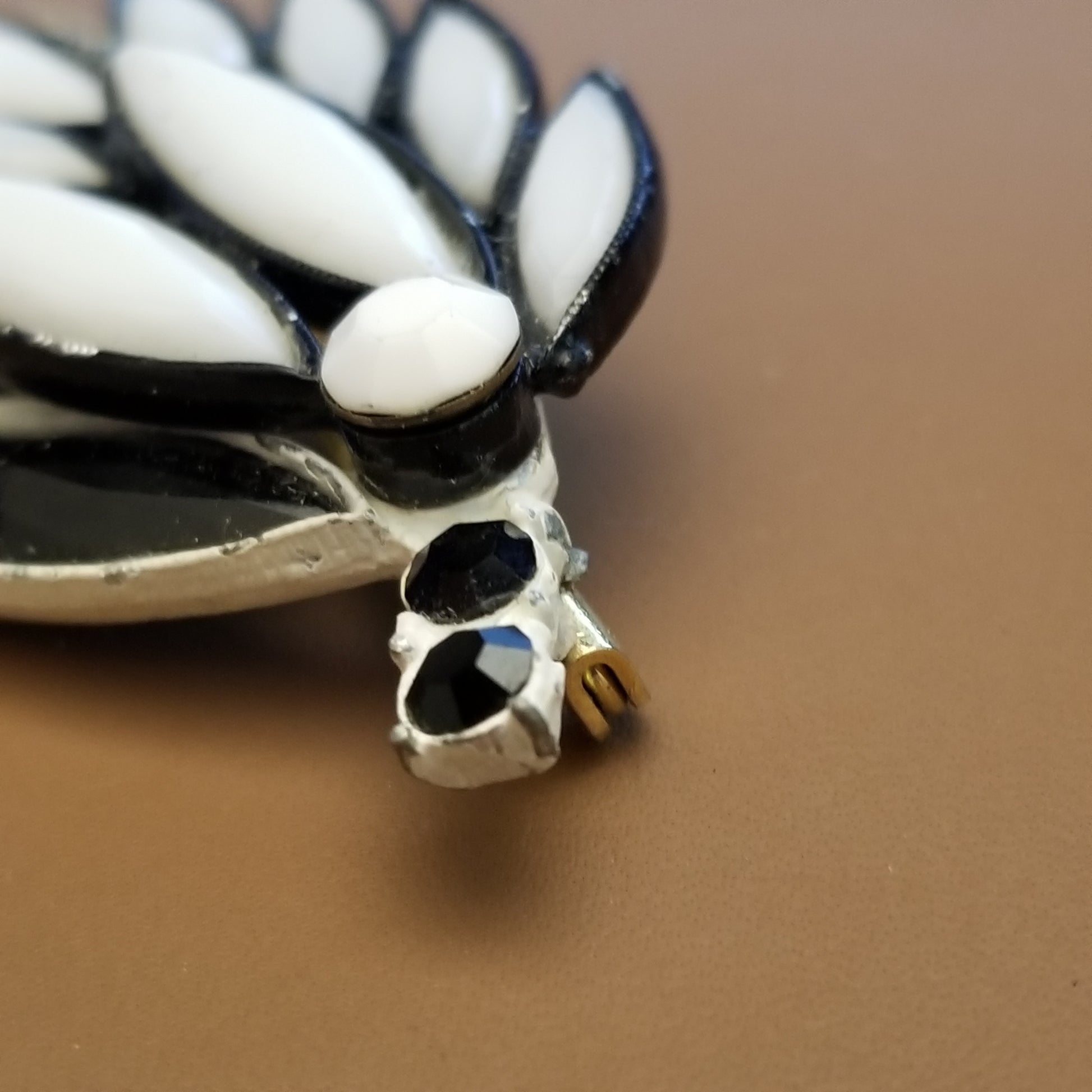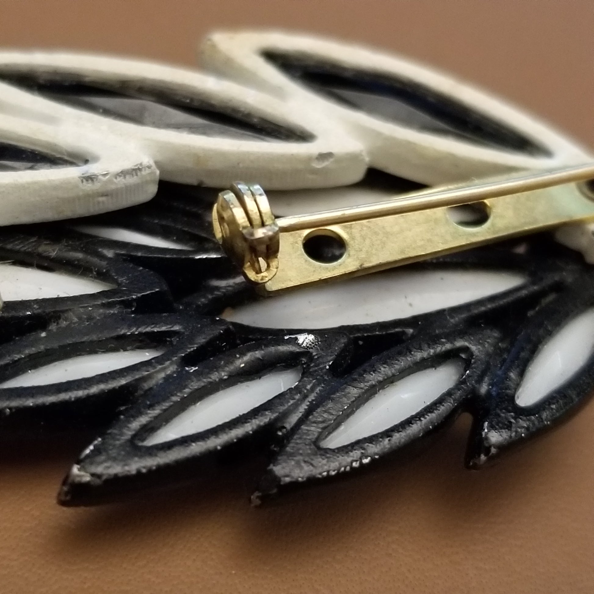 Be the belle of the ball with this vintage black and white brooch! Add a little elegance and style to any outfit, while adding a hint of your own unique personality. Wear it with a dress or dress up a casual t-shirt- this brooch is fun and fabulous!