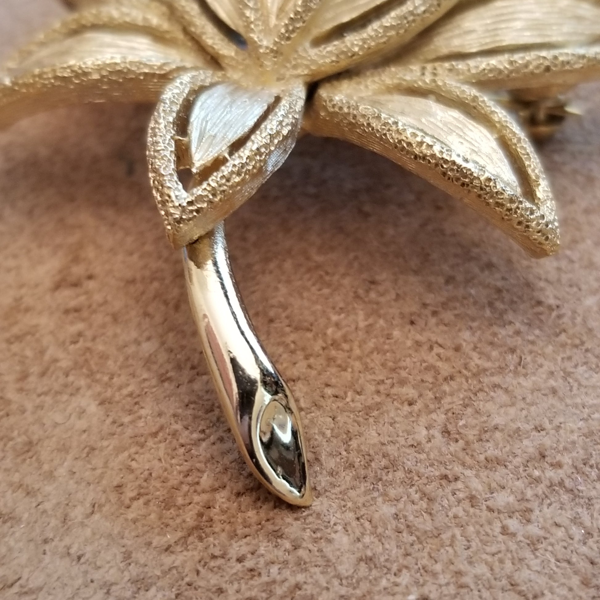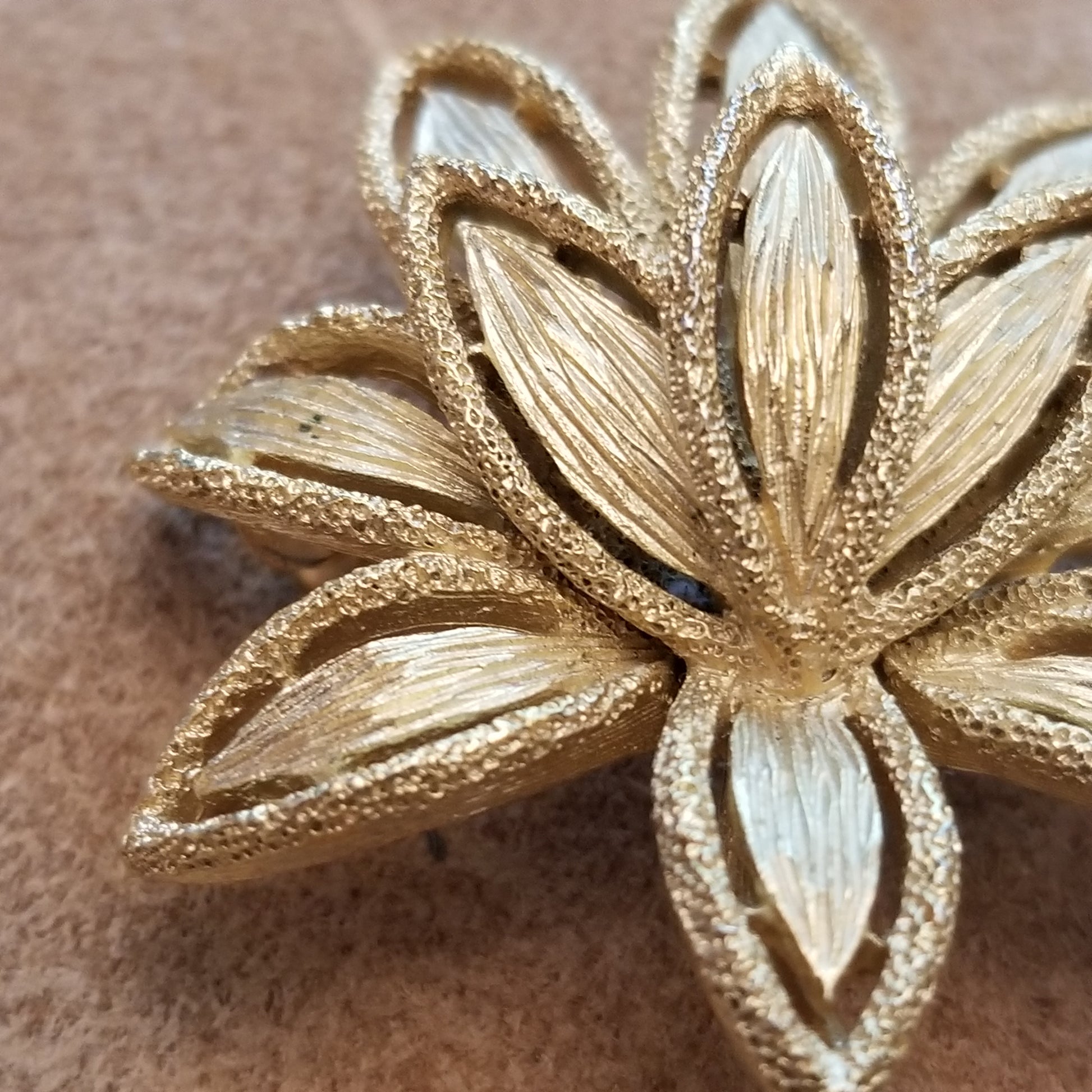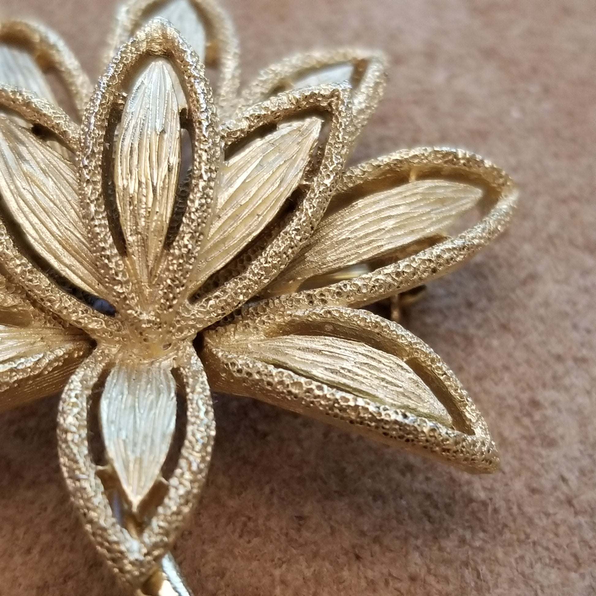 This retro Vintage Gold Tone Brooch is the one piece of jewelry you'll truly be *pin*ning for! Slip it on your favorite outfit and you'll be sure to start a conversation. With its unique design and beautiful color, it's the perfect accessory to complete your classic look.