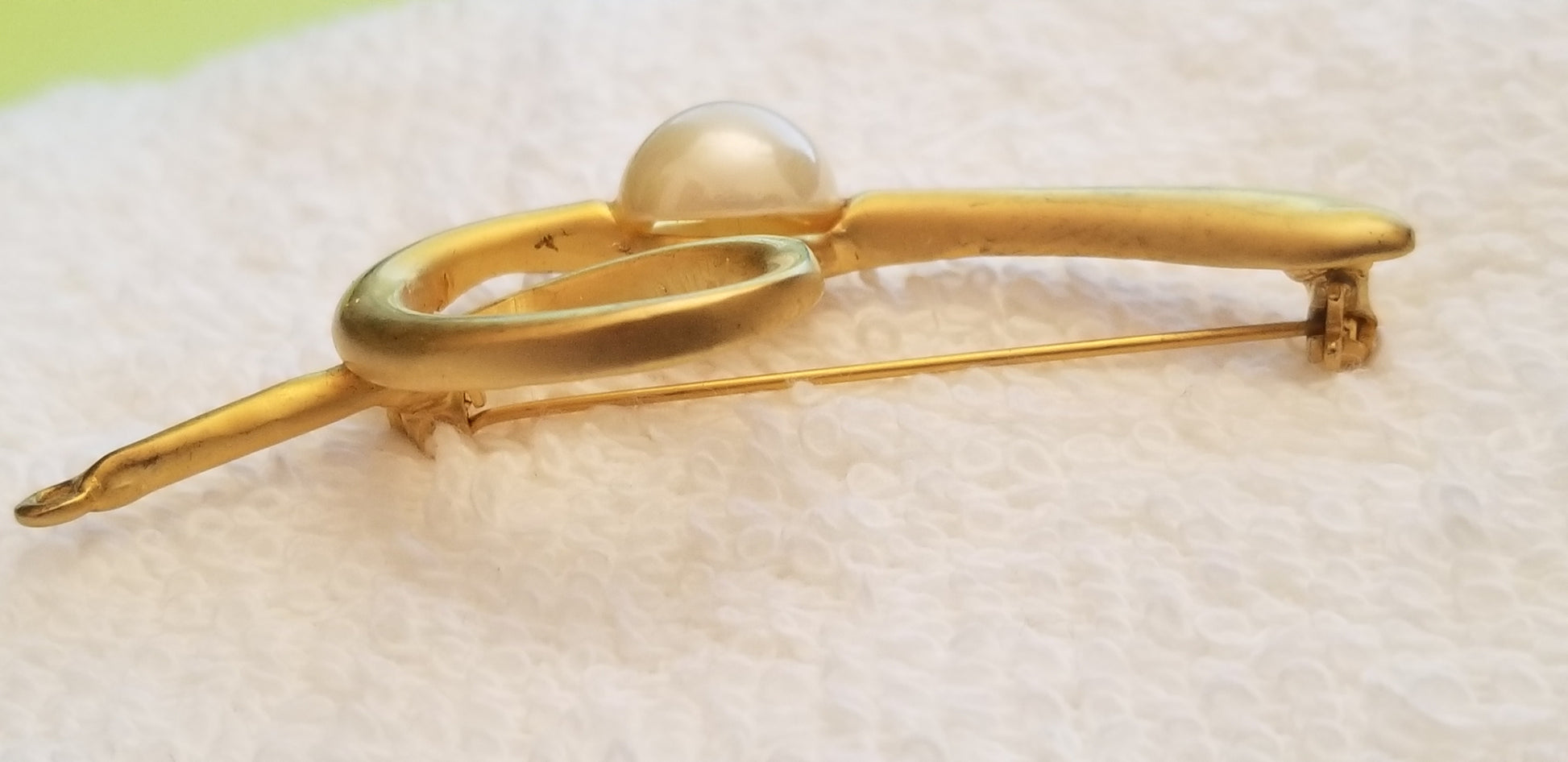 Vintage Gold Tone Faux Pearl Brooch
