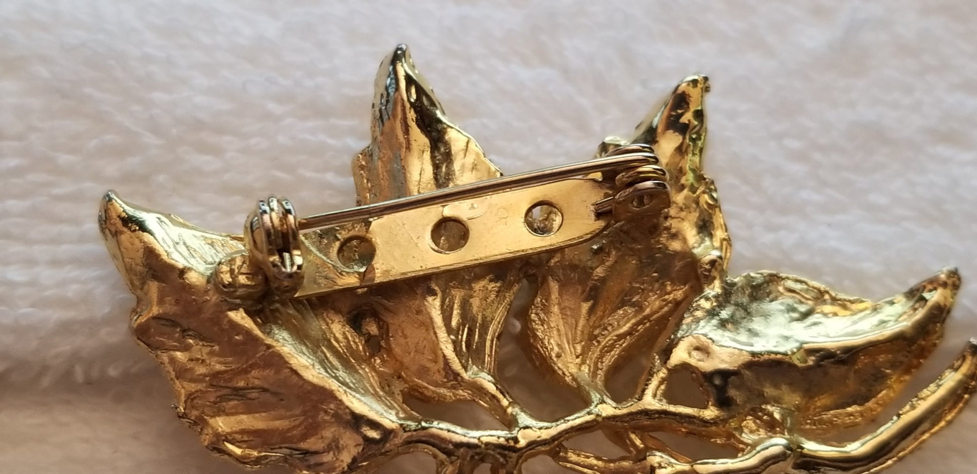 Vintage Gold Tone Pearl Leaves Brooch