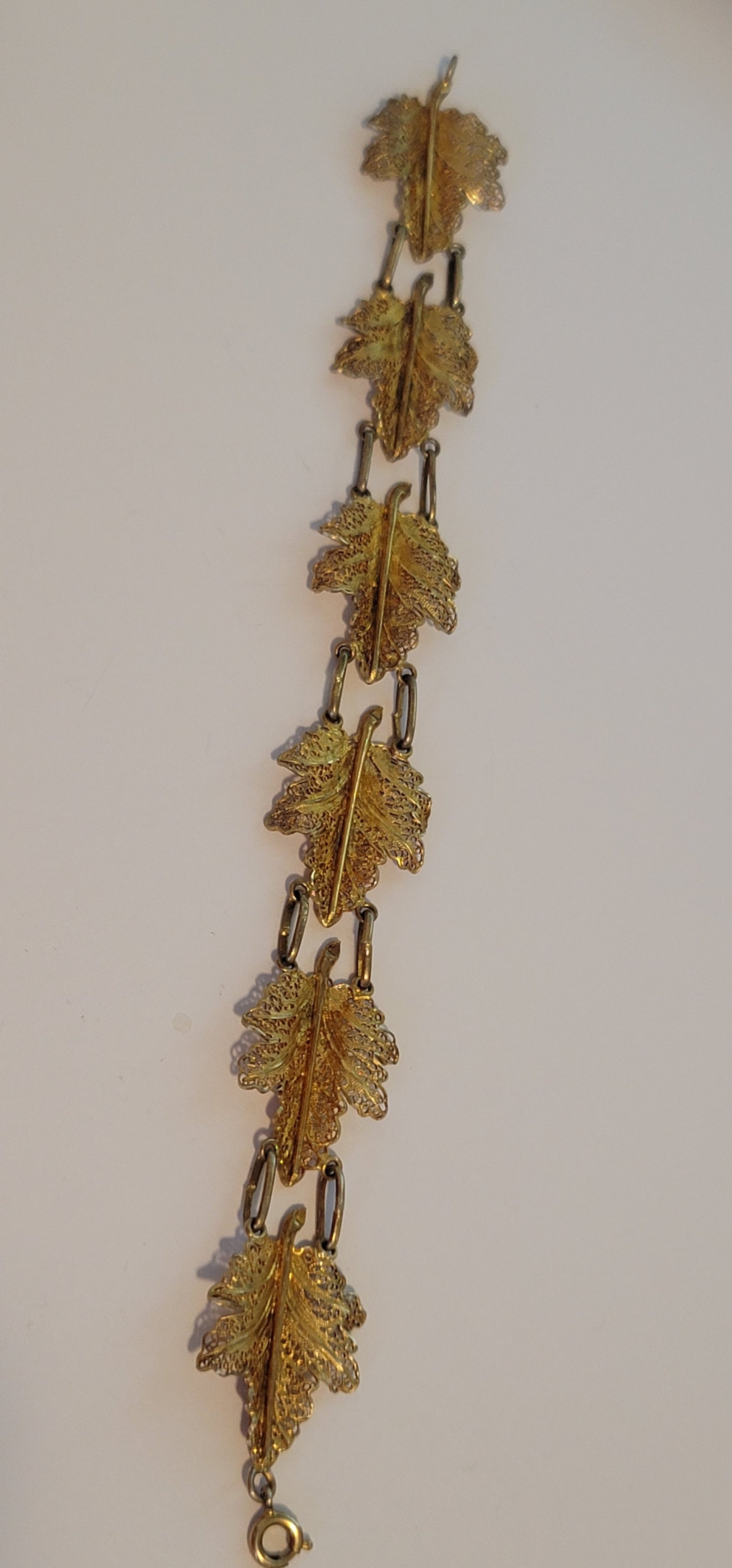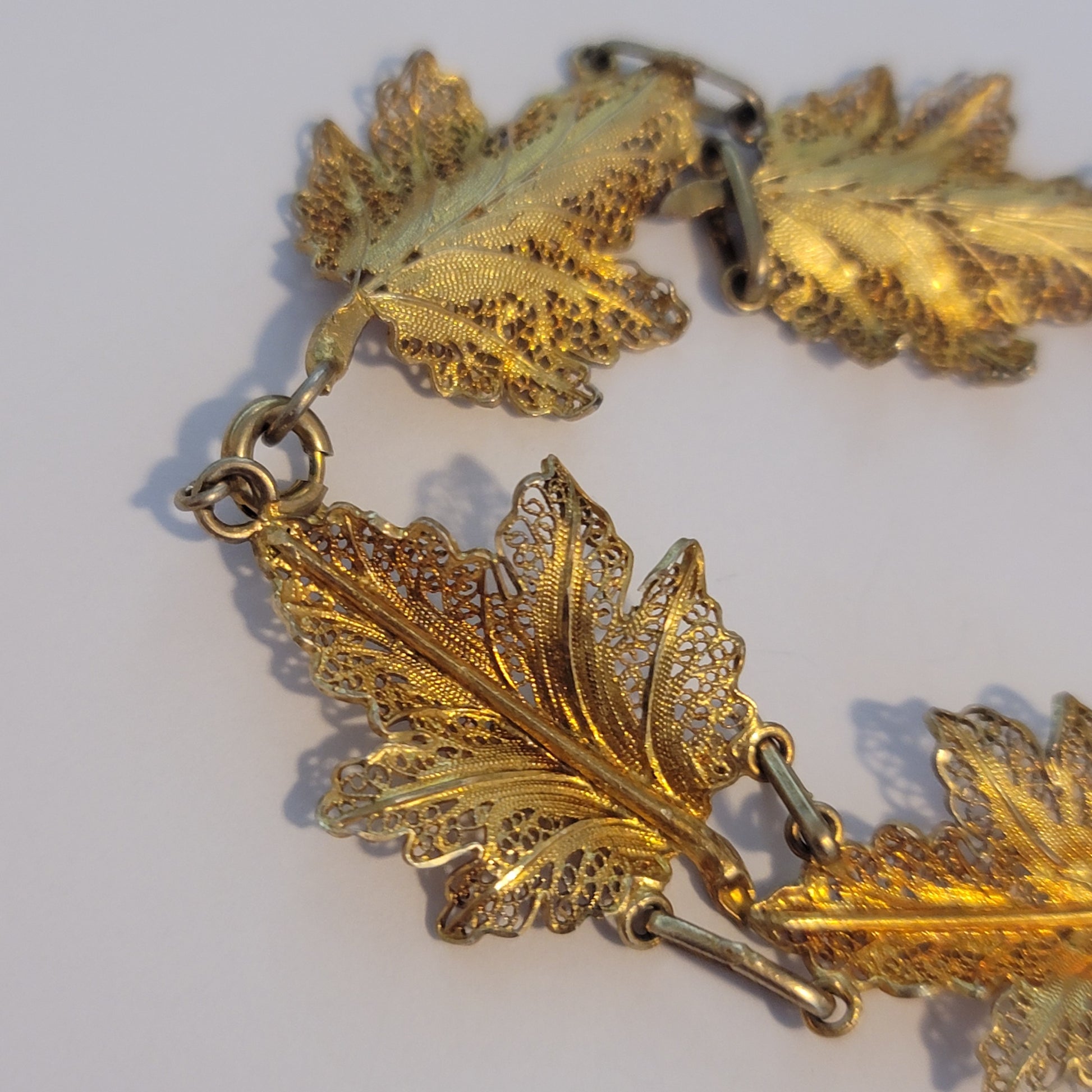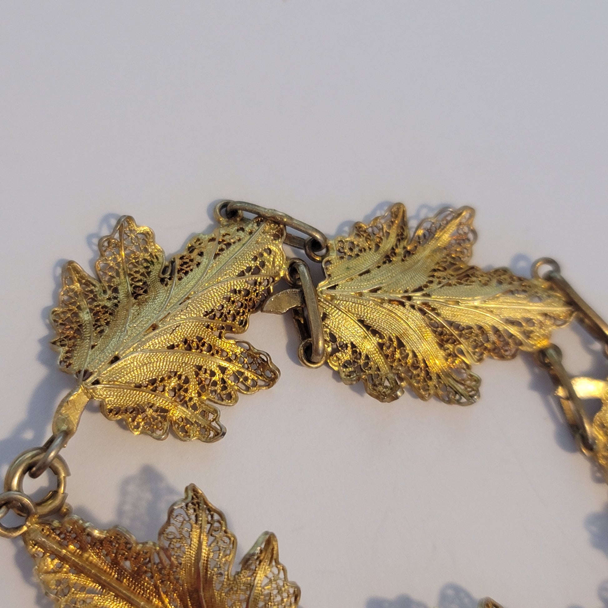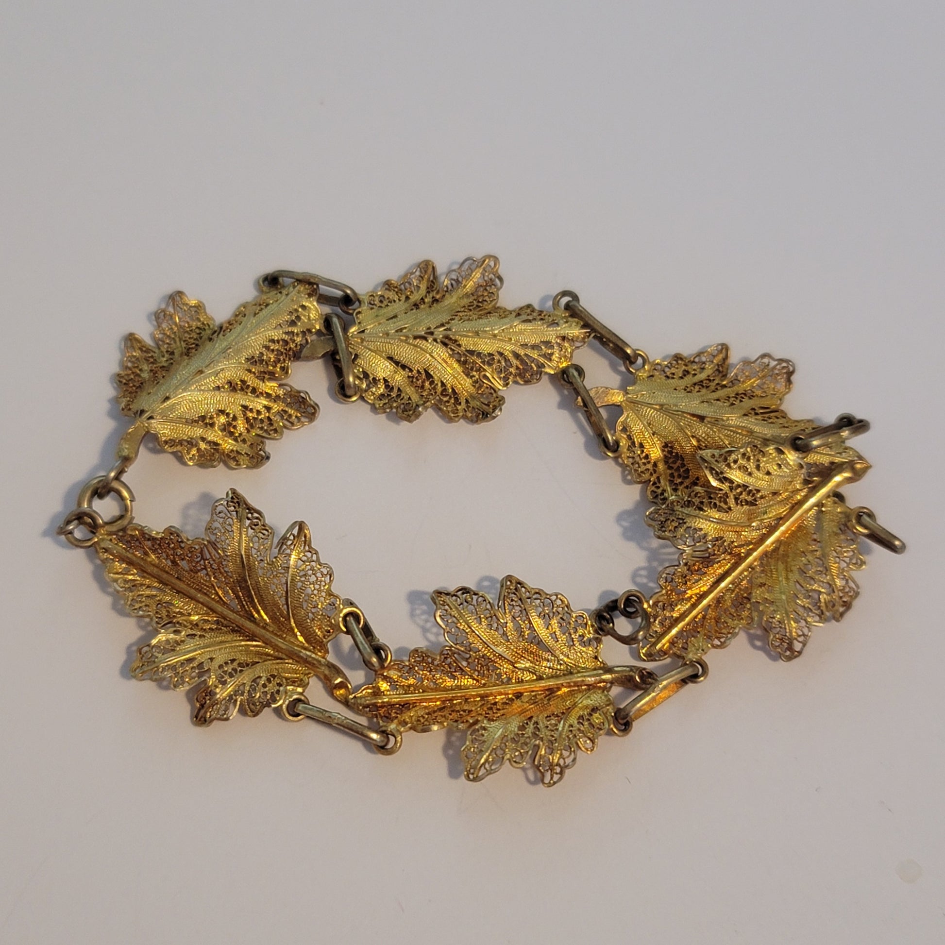 Vintage Gold Washed Vermeil Filigree Leaf Bracelet