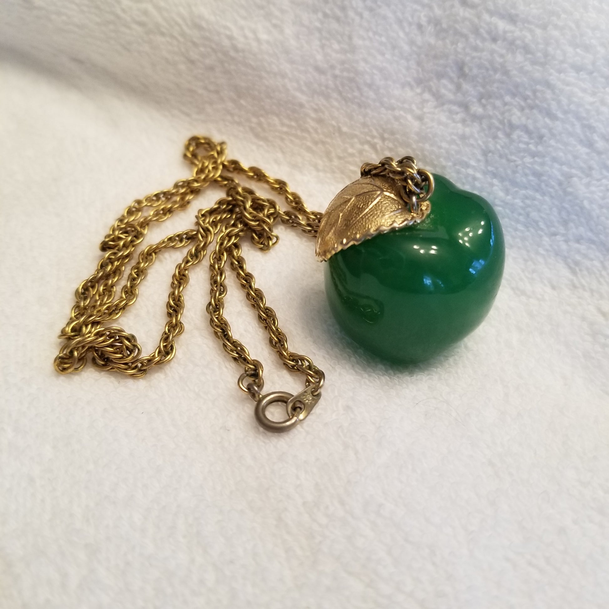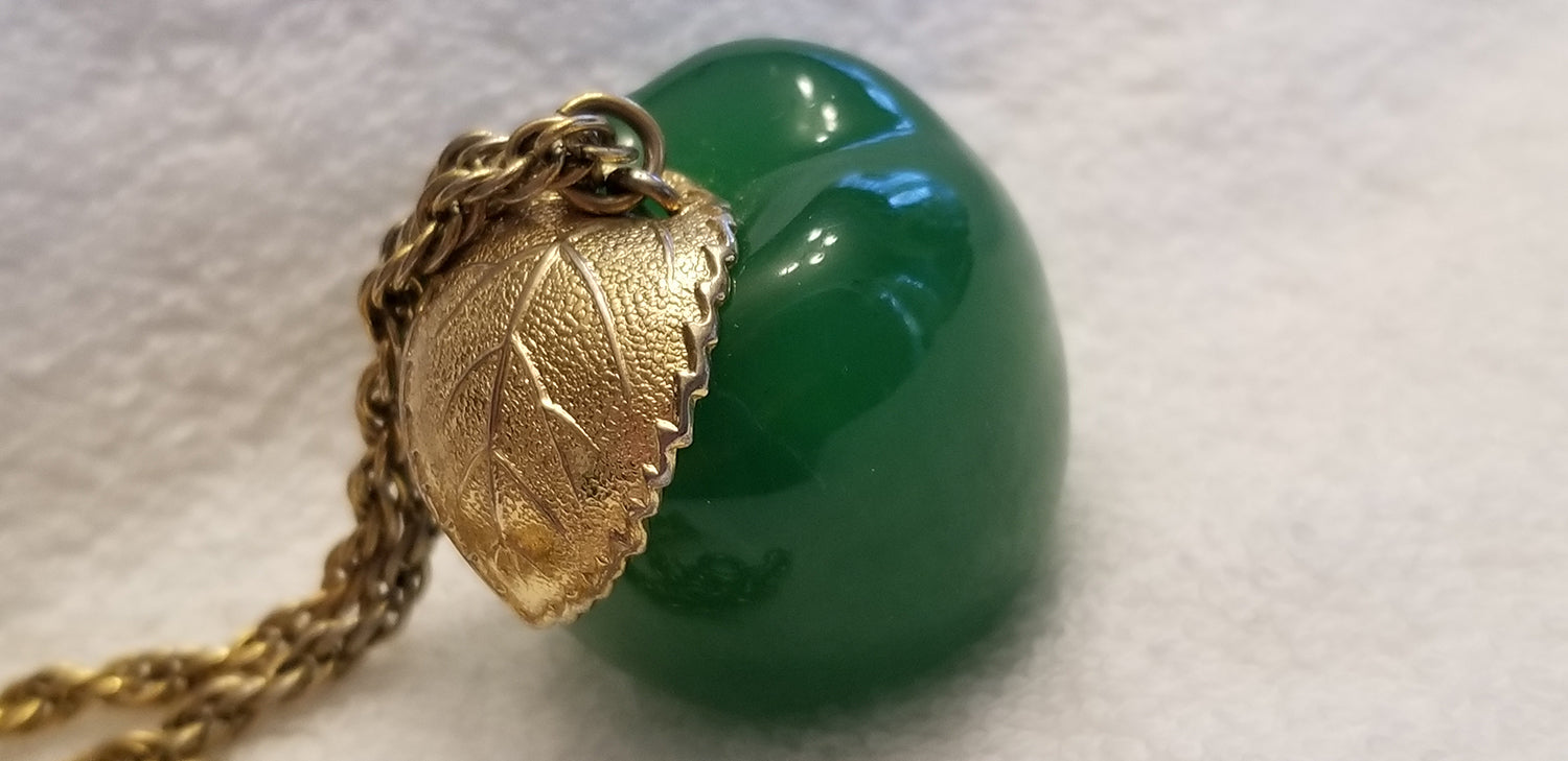 Vintage Green Apple Gold Tone Necklace