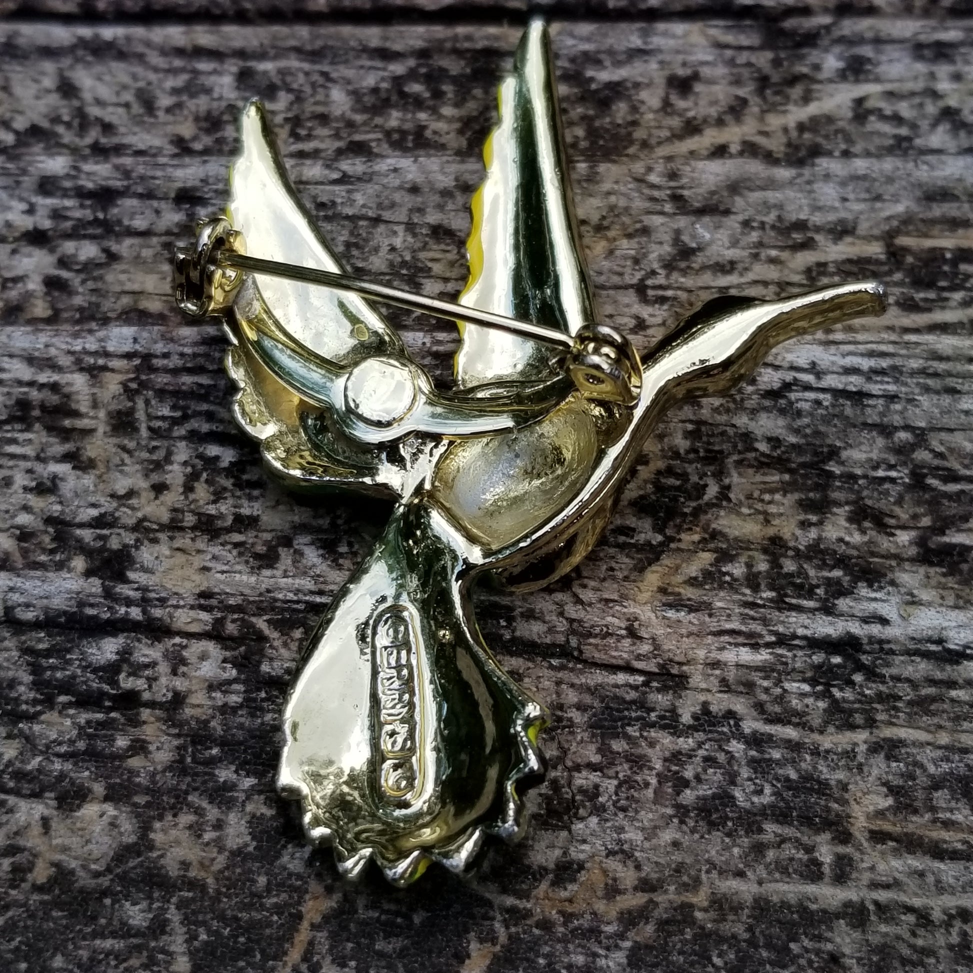 Vintage Green Bird Brooch