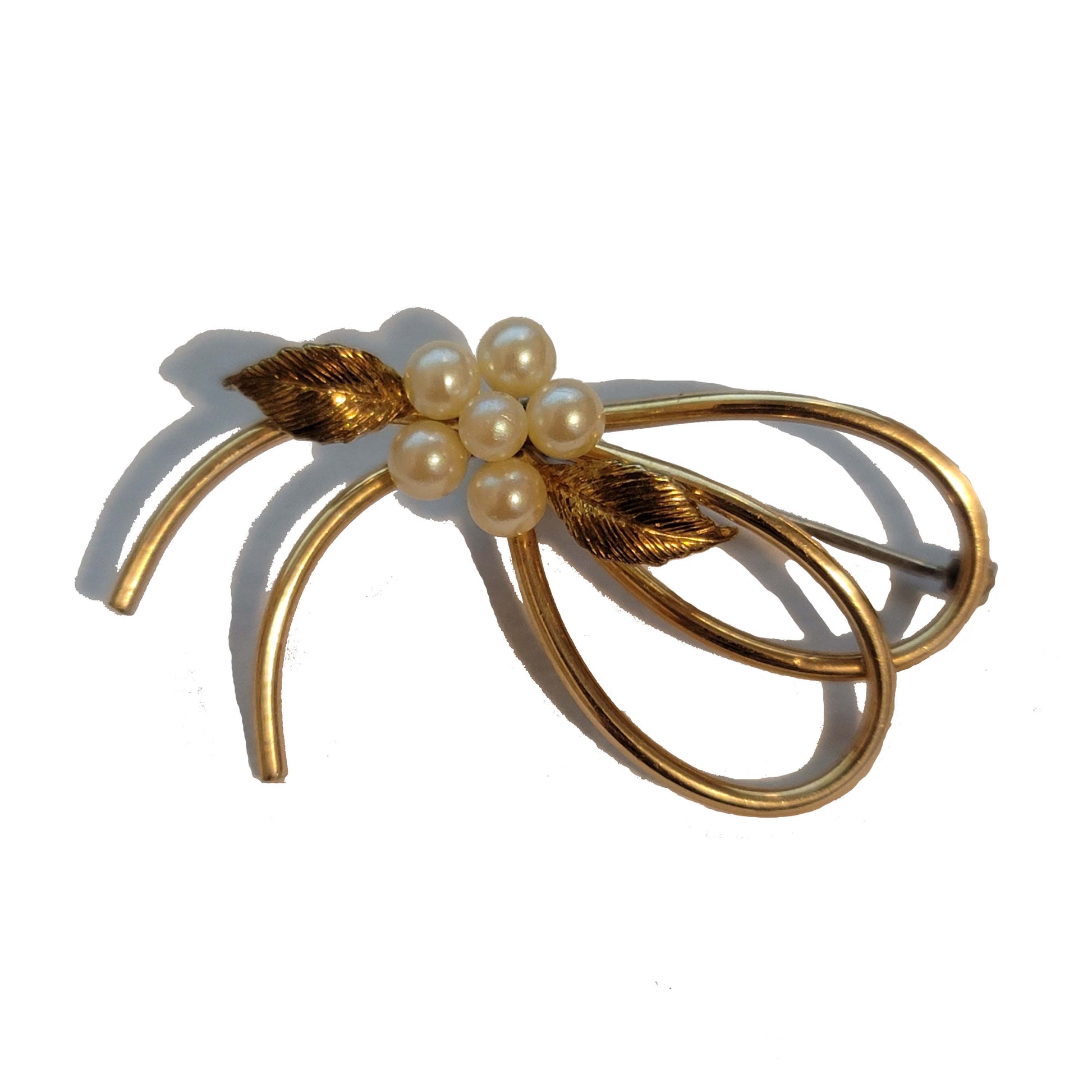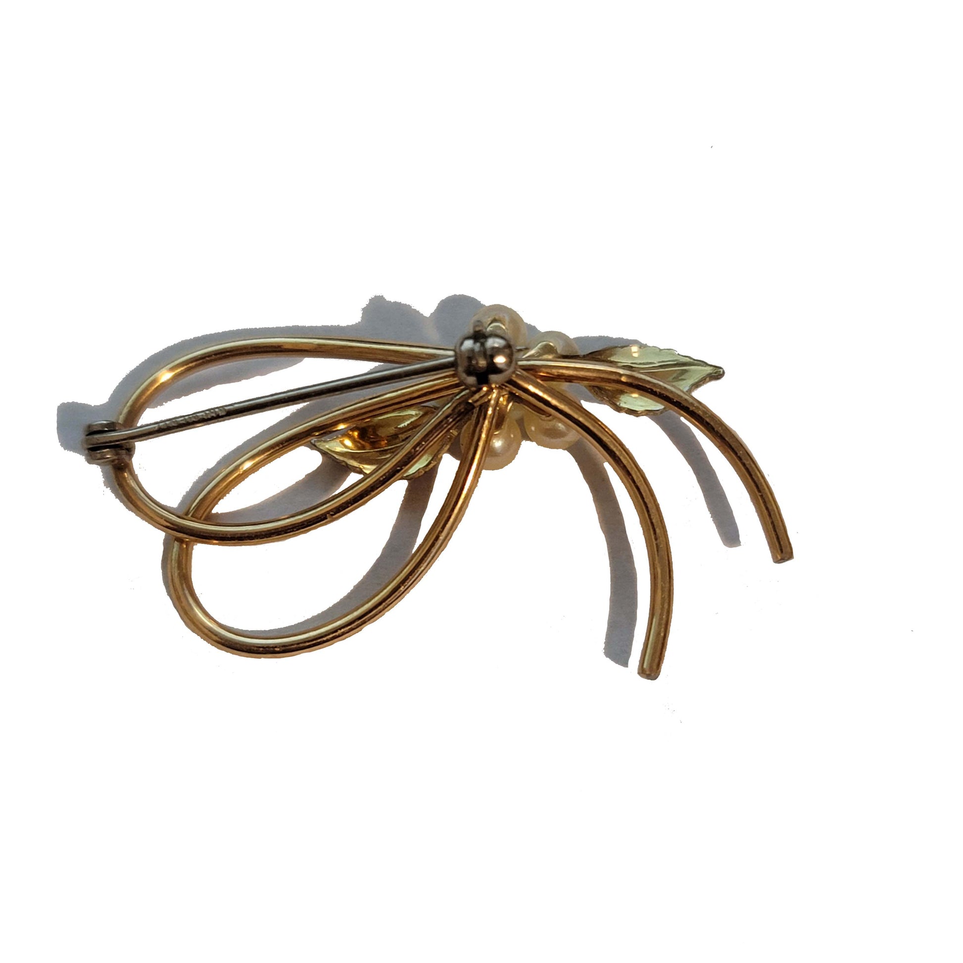 Vintage Krementz Bow Brooch – Gold Filled with Cultured Pearls