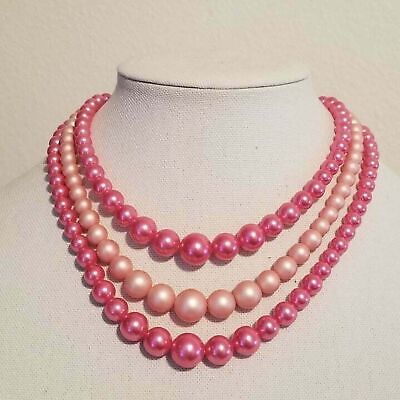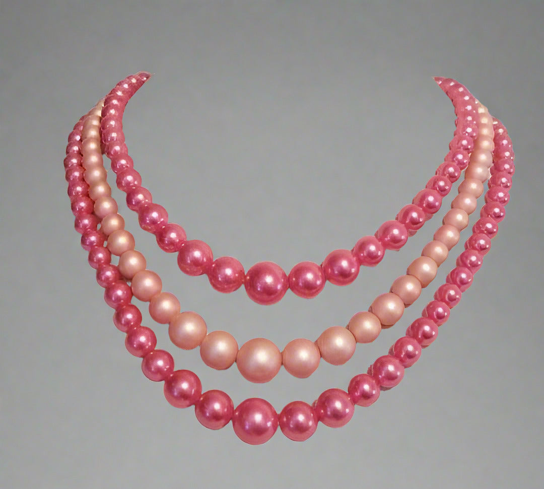 Vintage Pink 3 Strand Choker Necklace