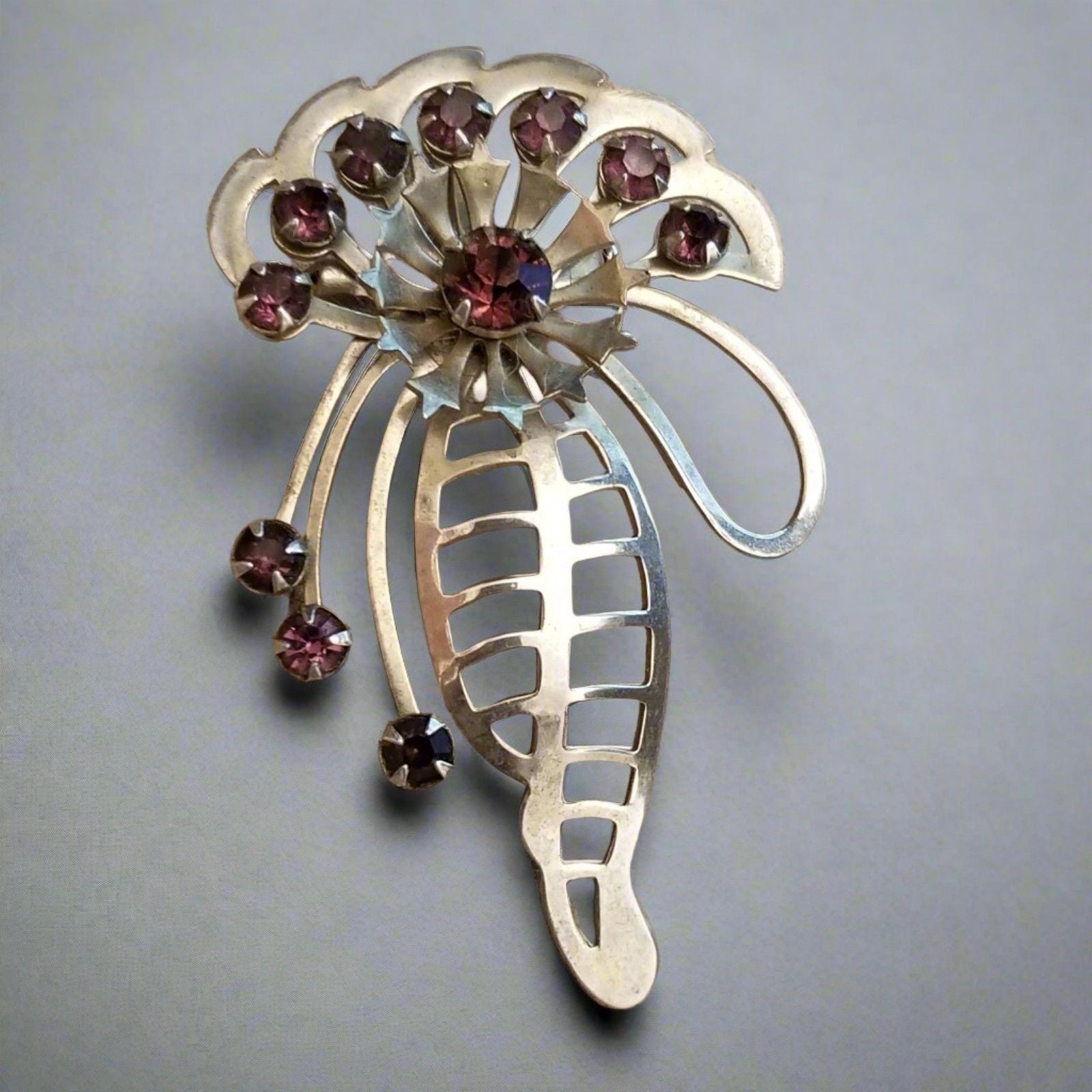 Vintage Silver Tone Rhinestone Brooch Pendant