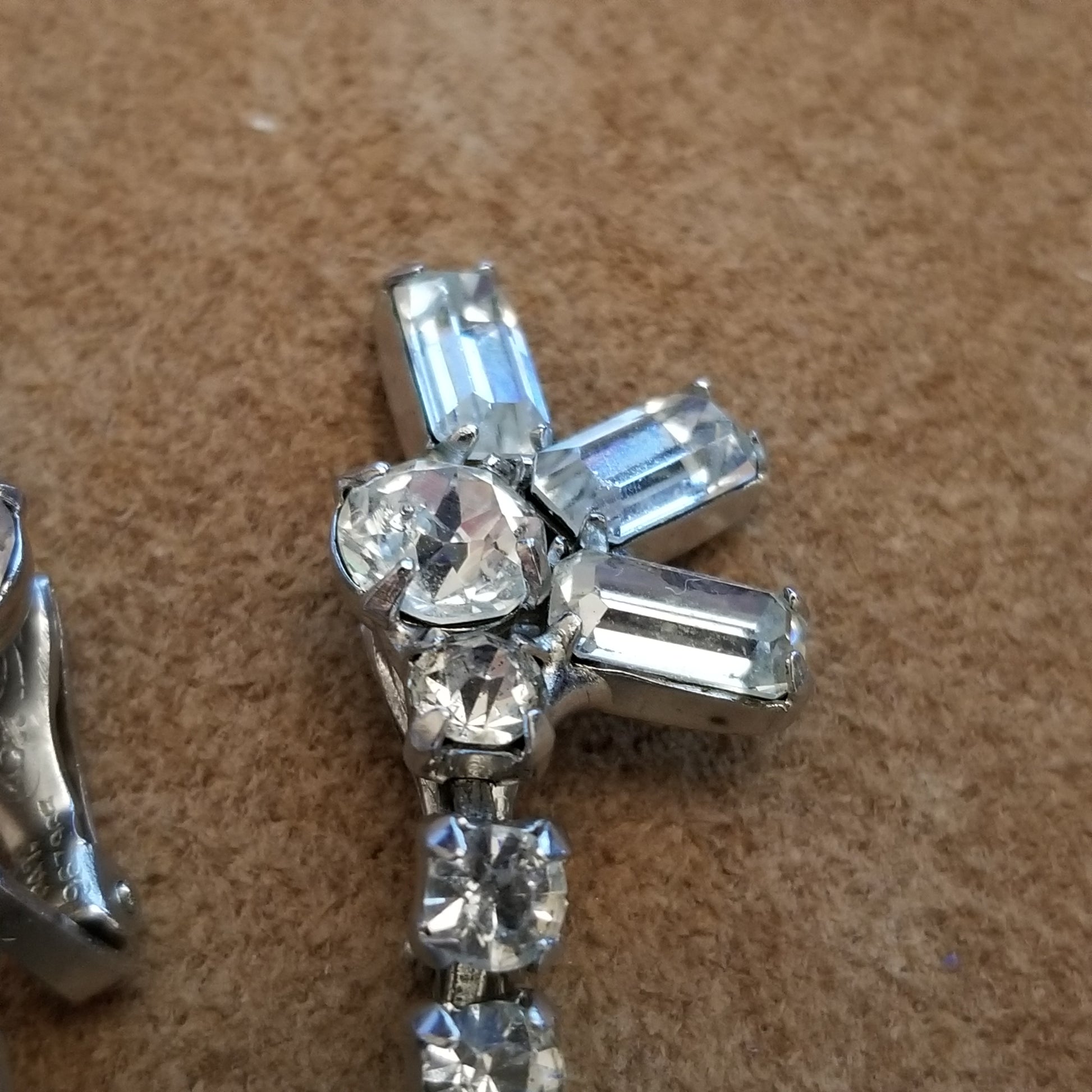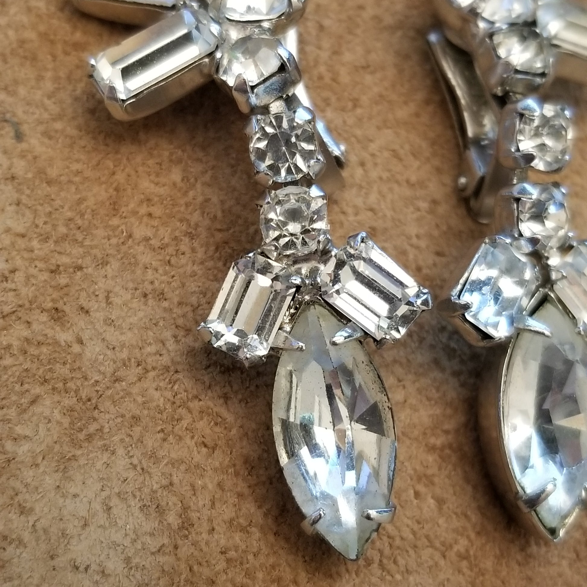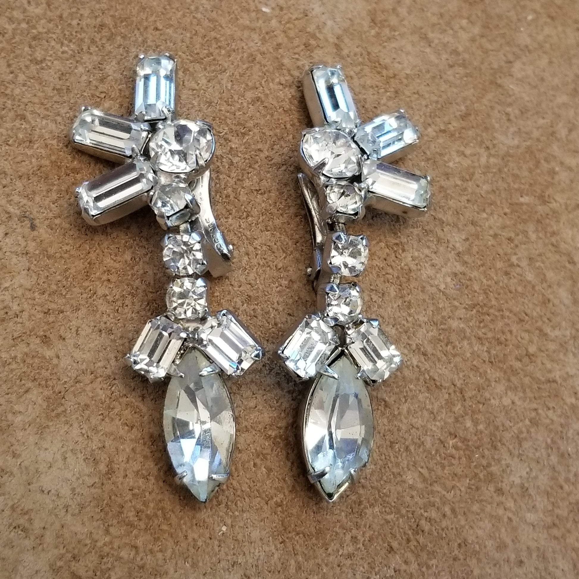 Vintage Silver Tone Rhinestone Clip On Earrings