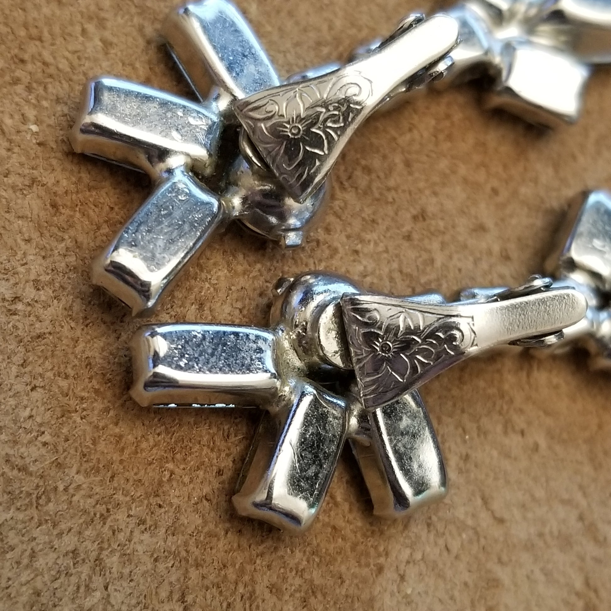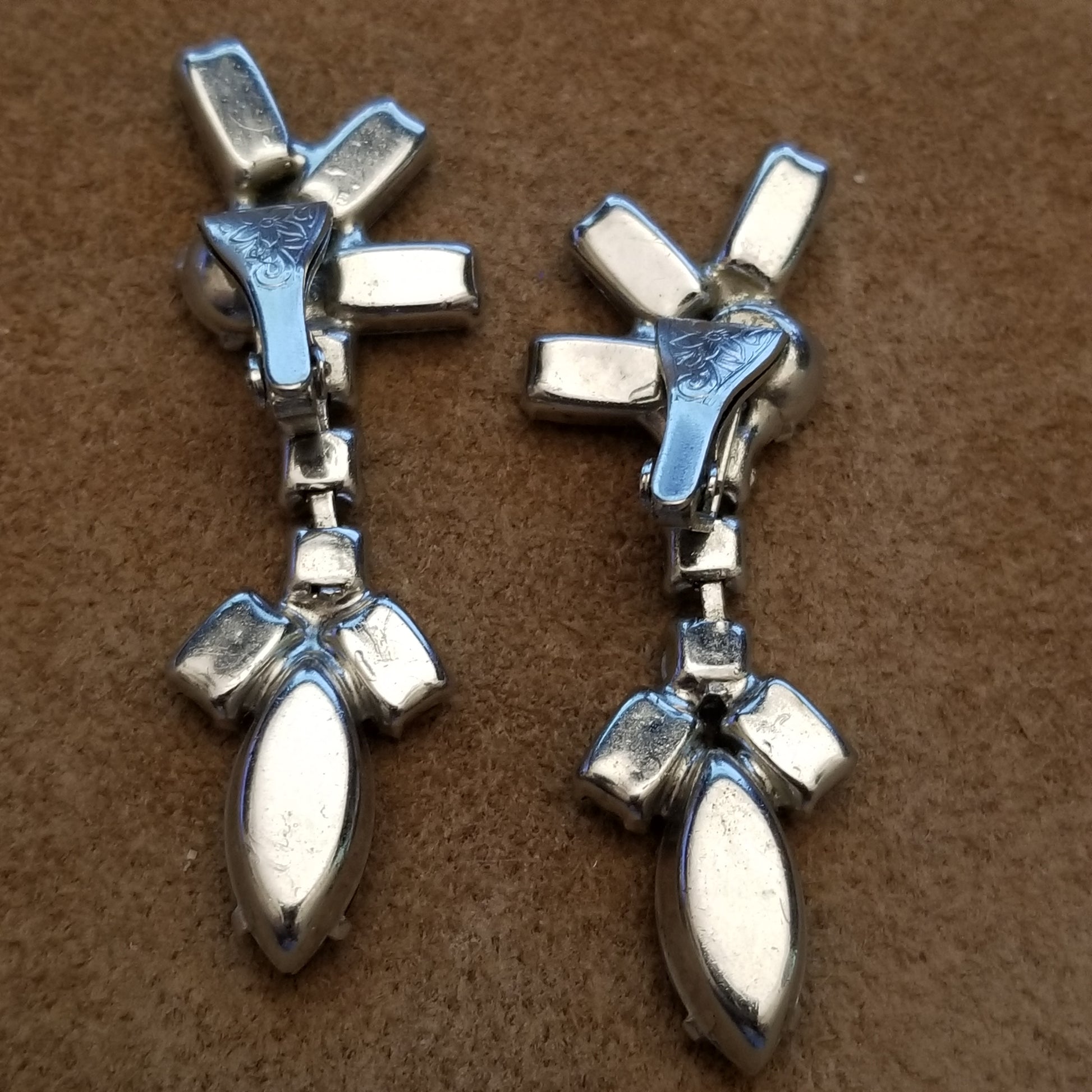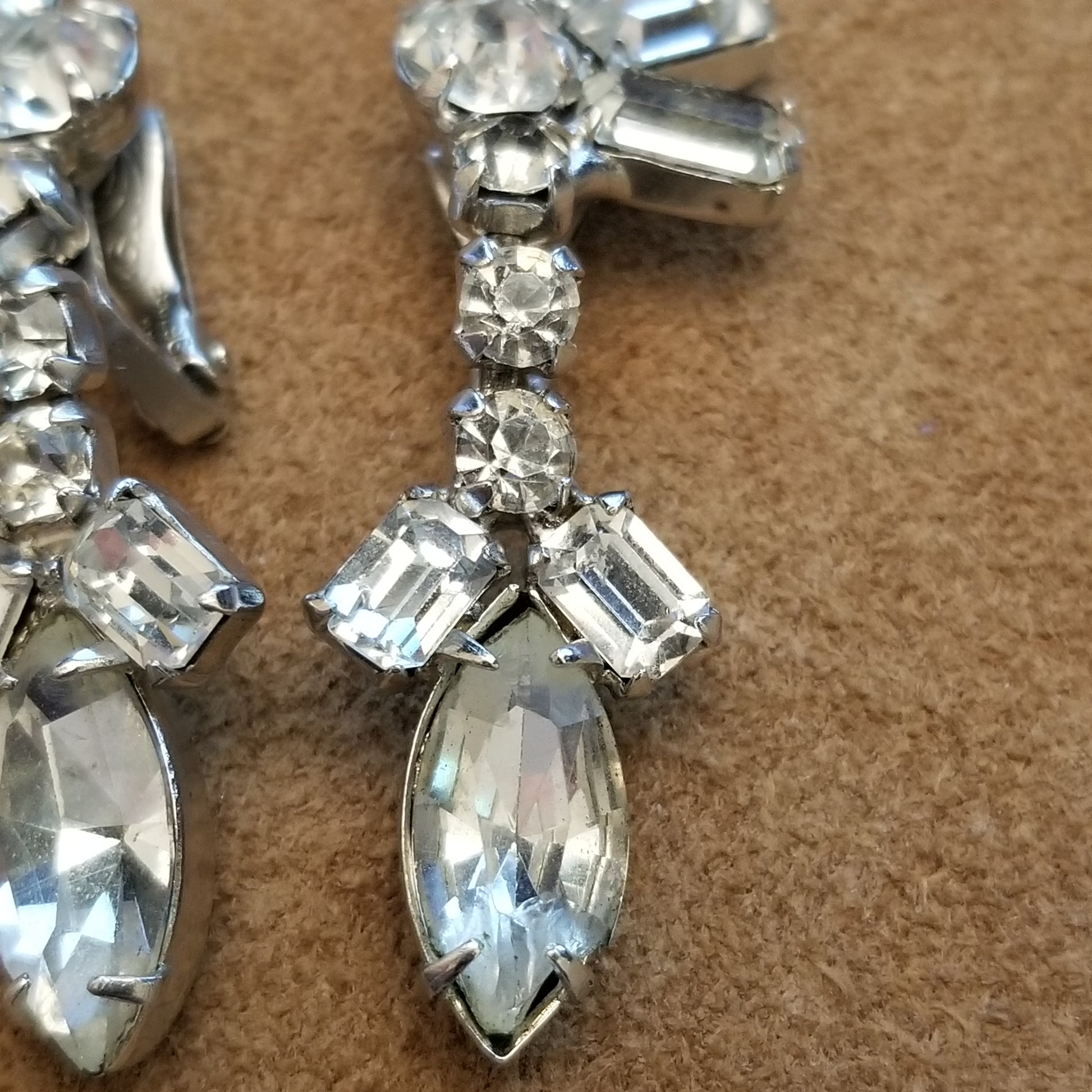 Vintage Silver Tone Rhinestone Clip On Earrings