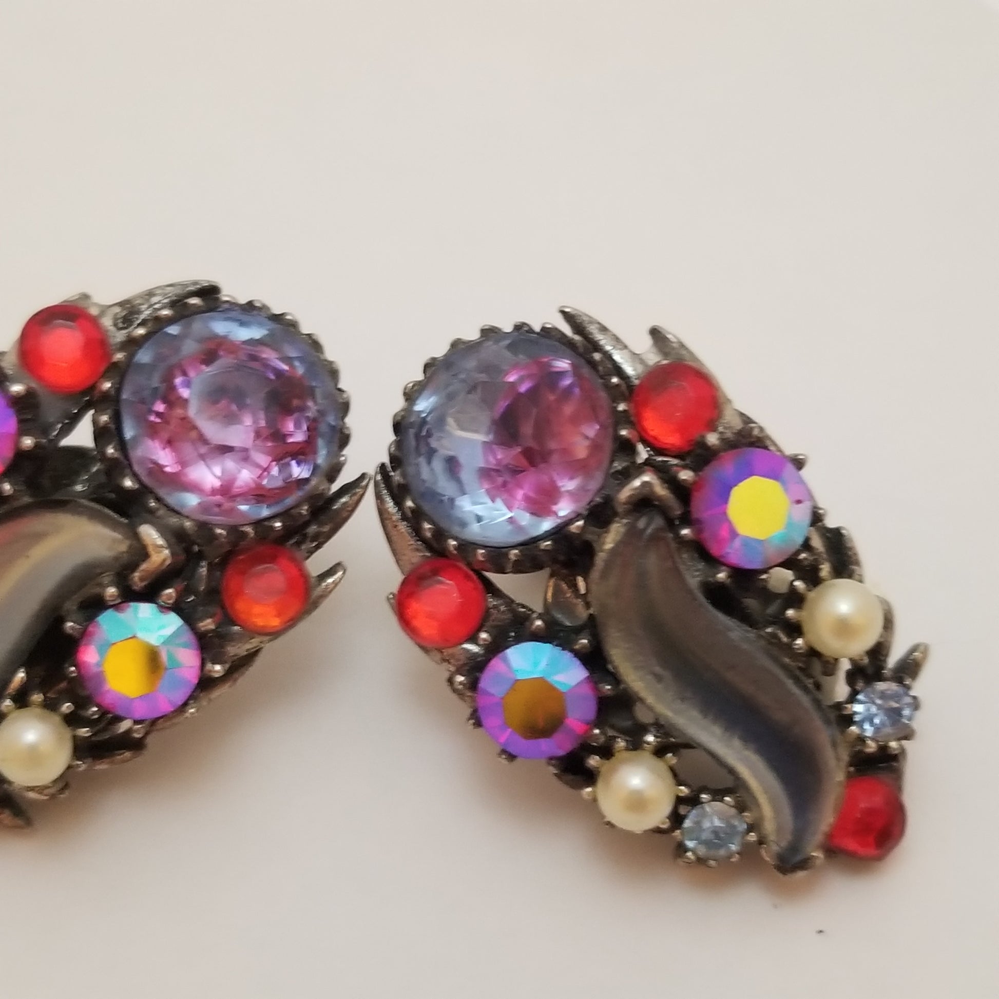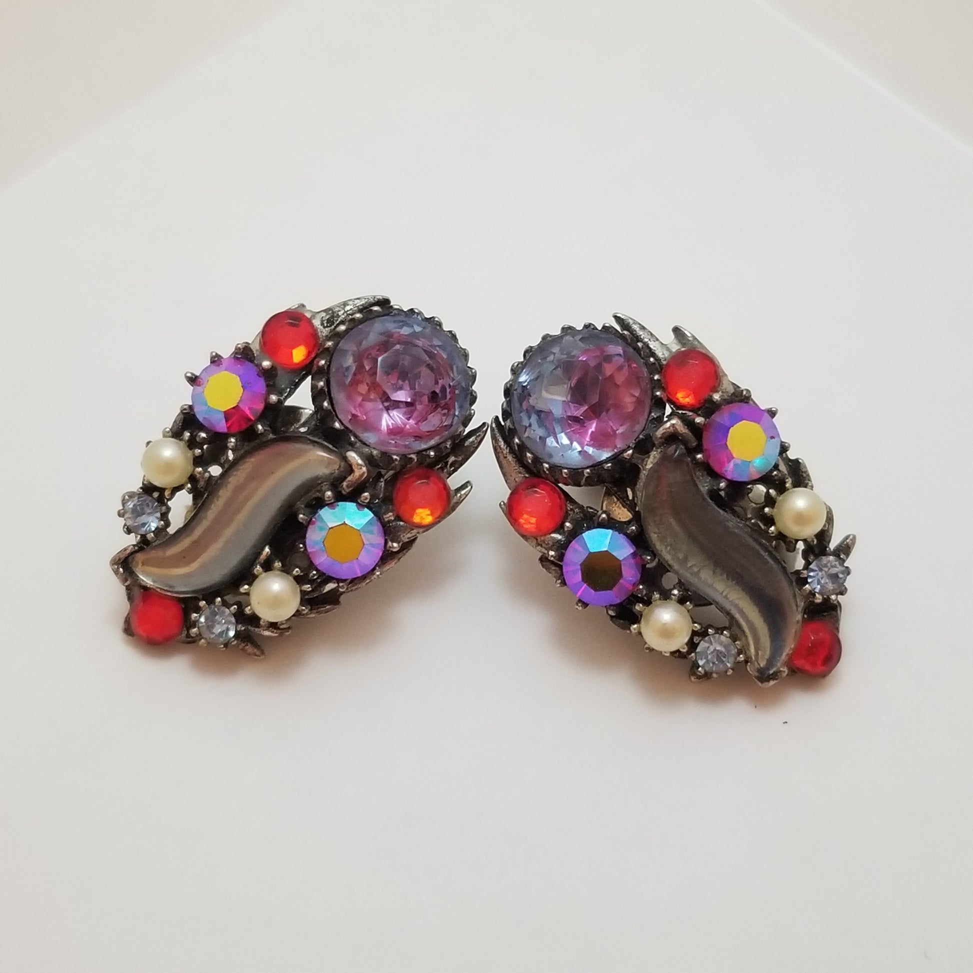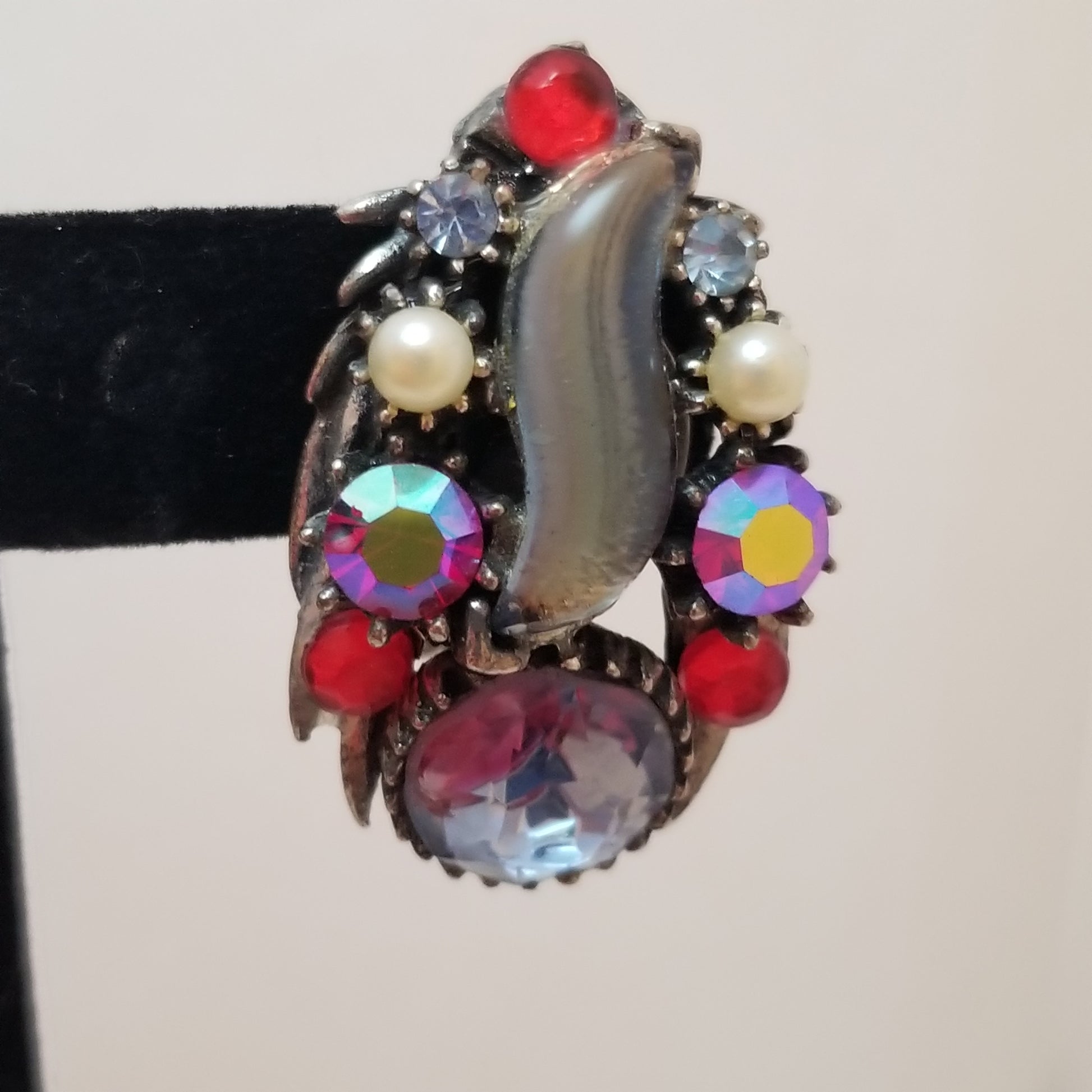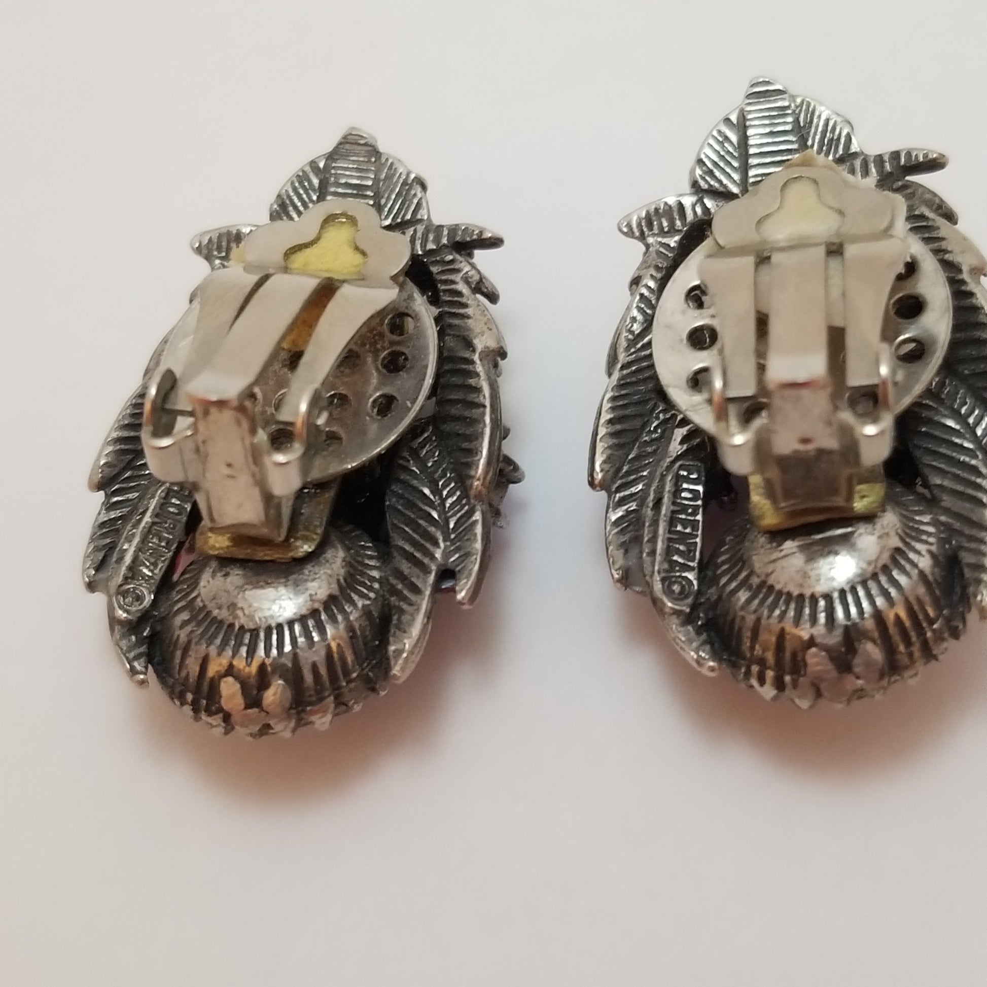 Vintage Starburst Glass Clip On Earrings Signed Florenza