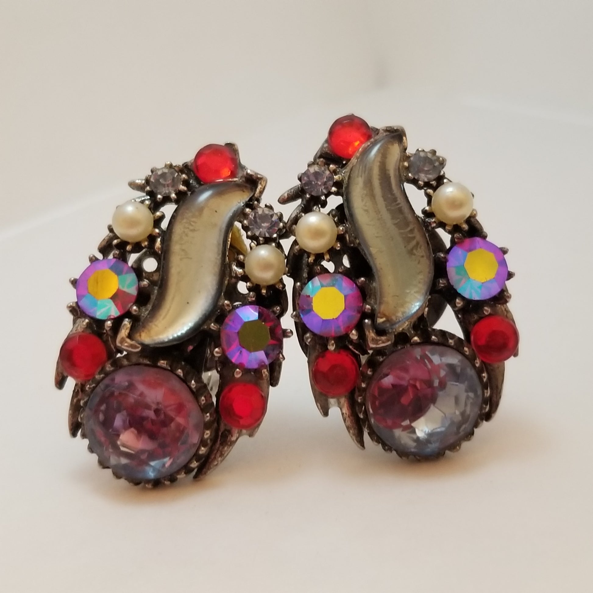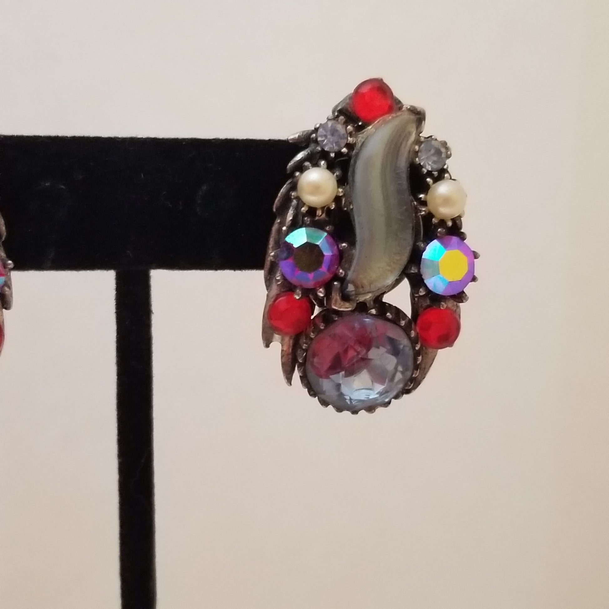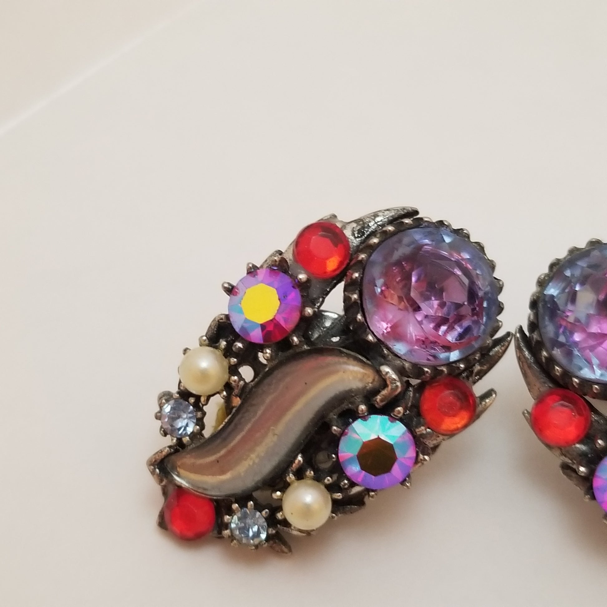 Vintage Starburst Glass Clip On Earrings Signed Florenza