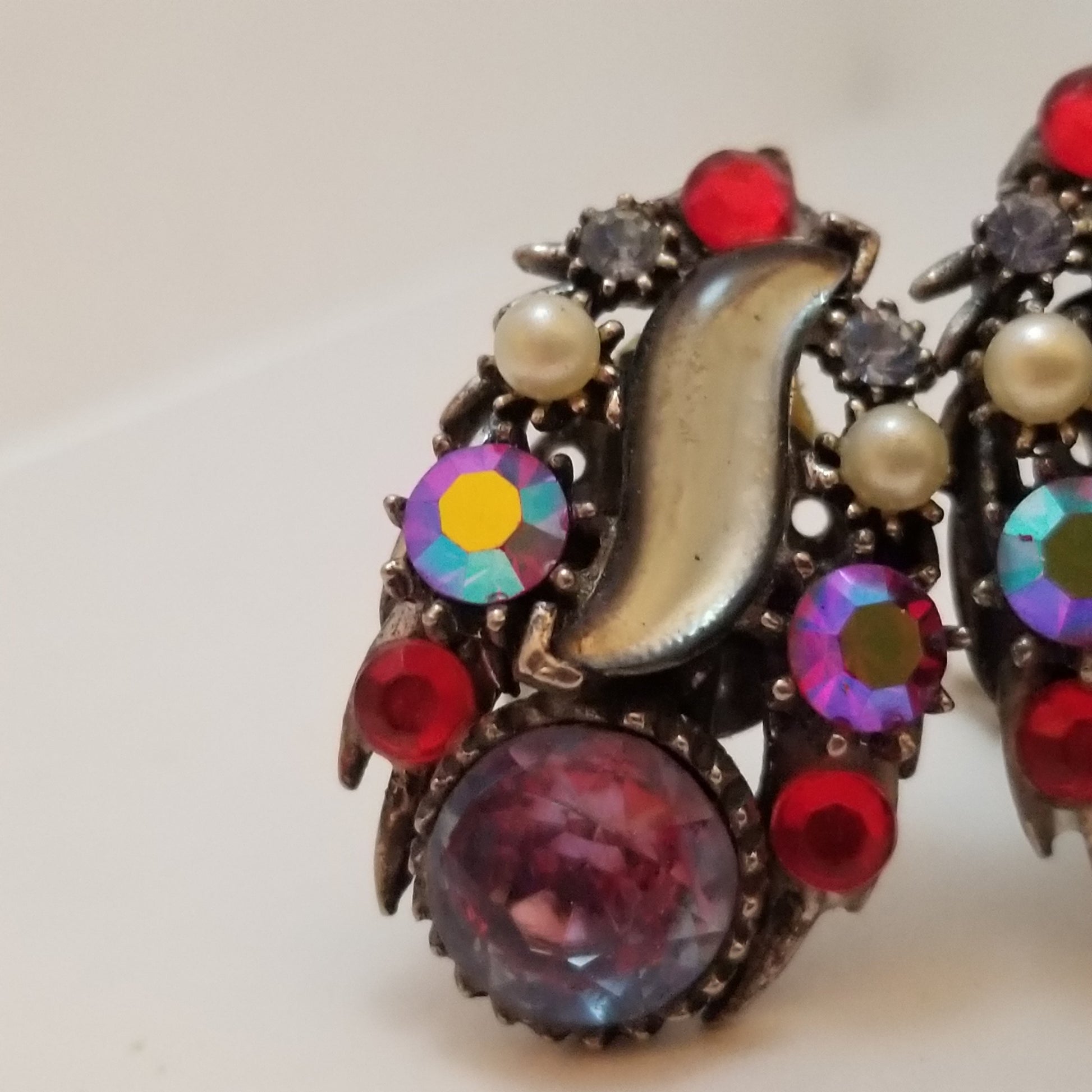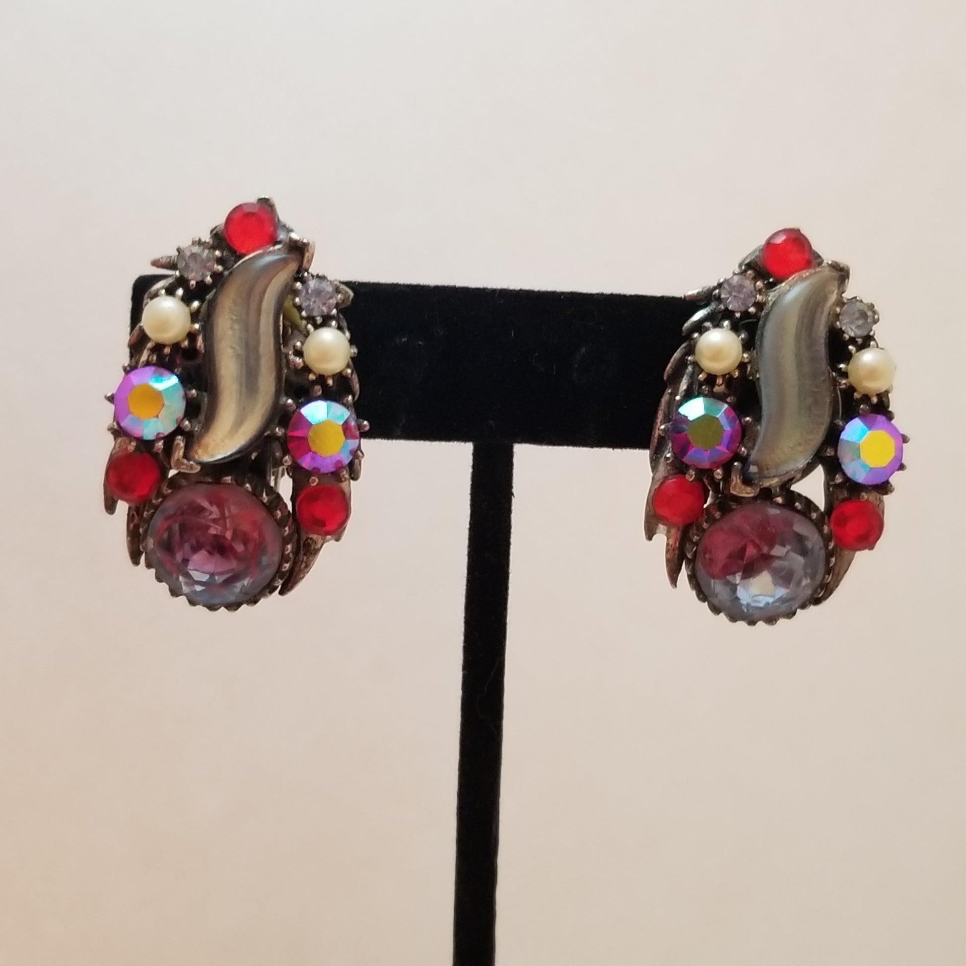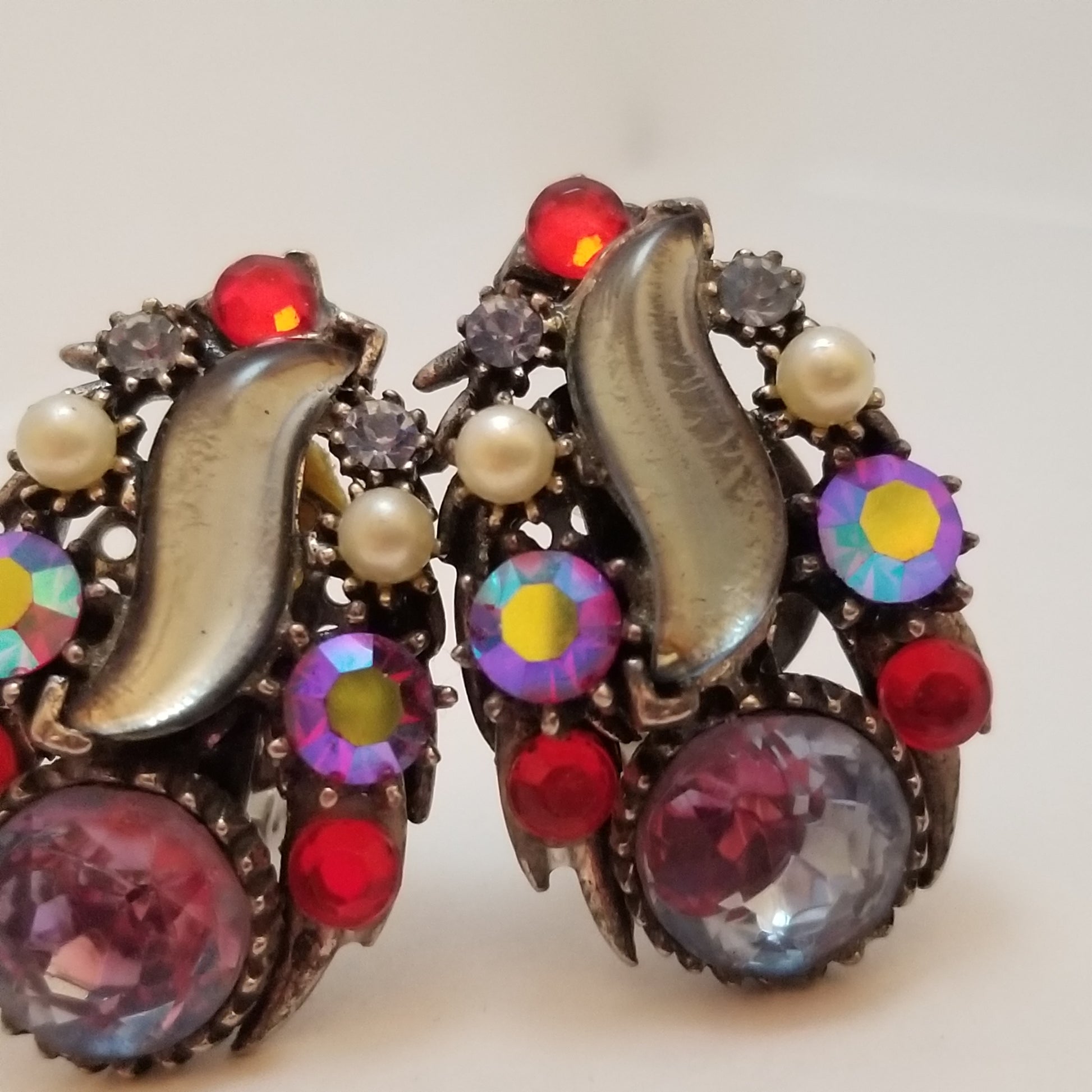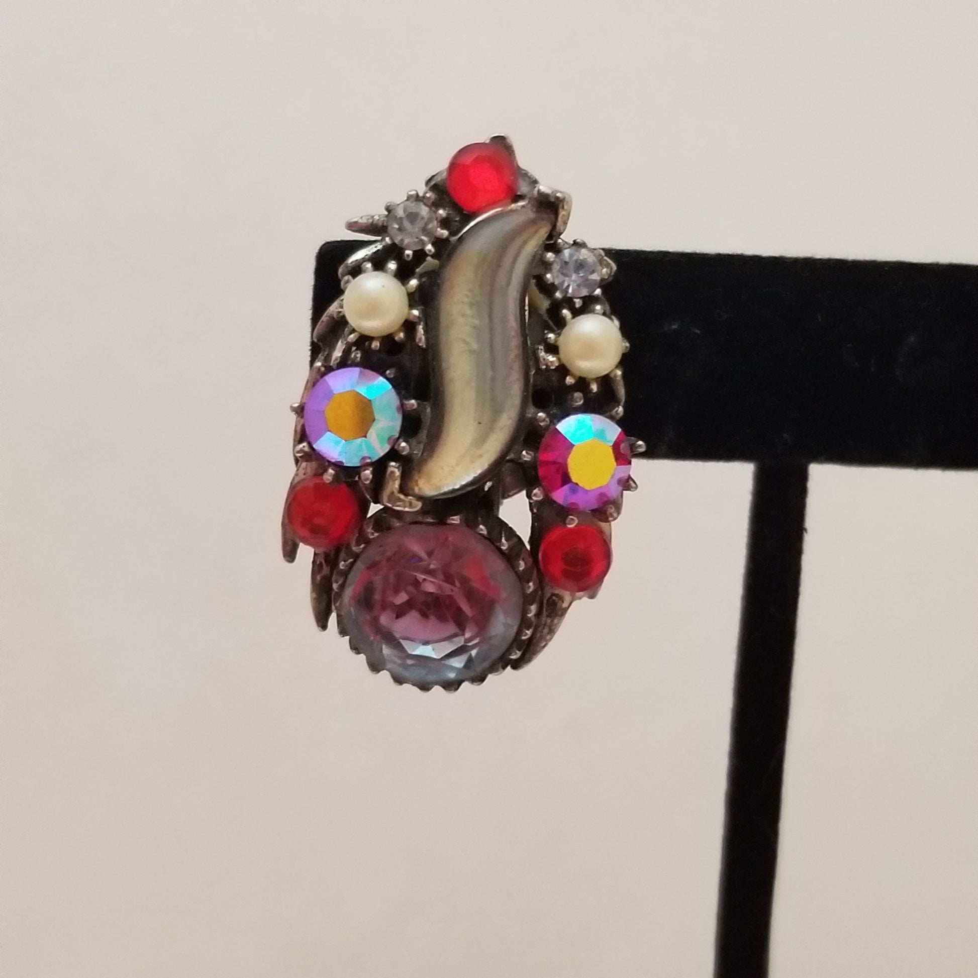 Vintage Starburst Glass Clip On Earrings Signed Florenza