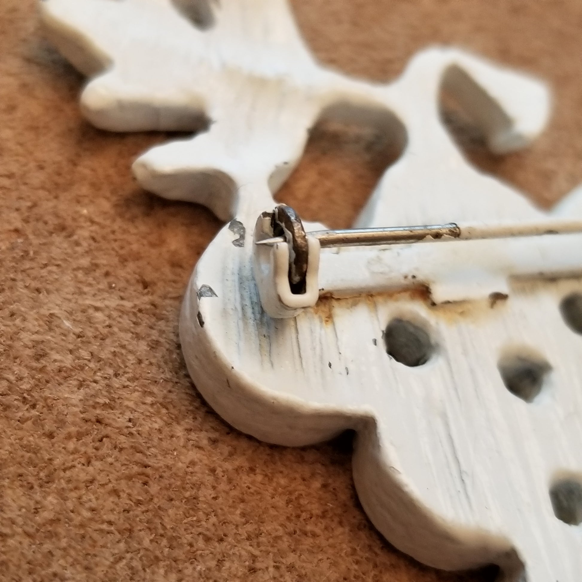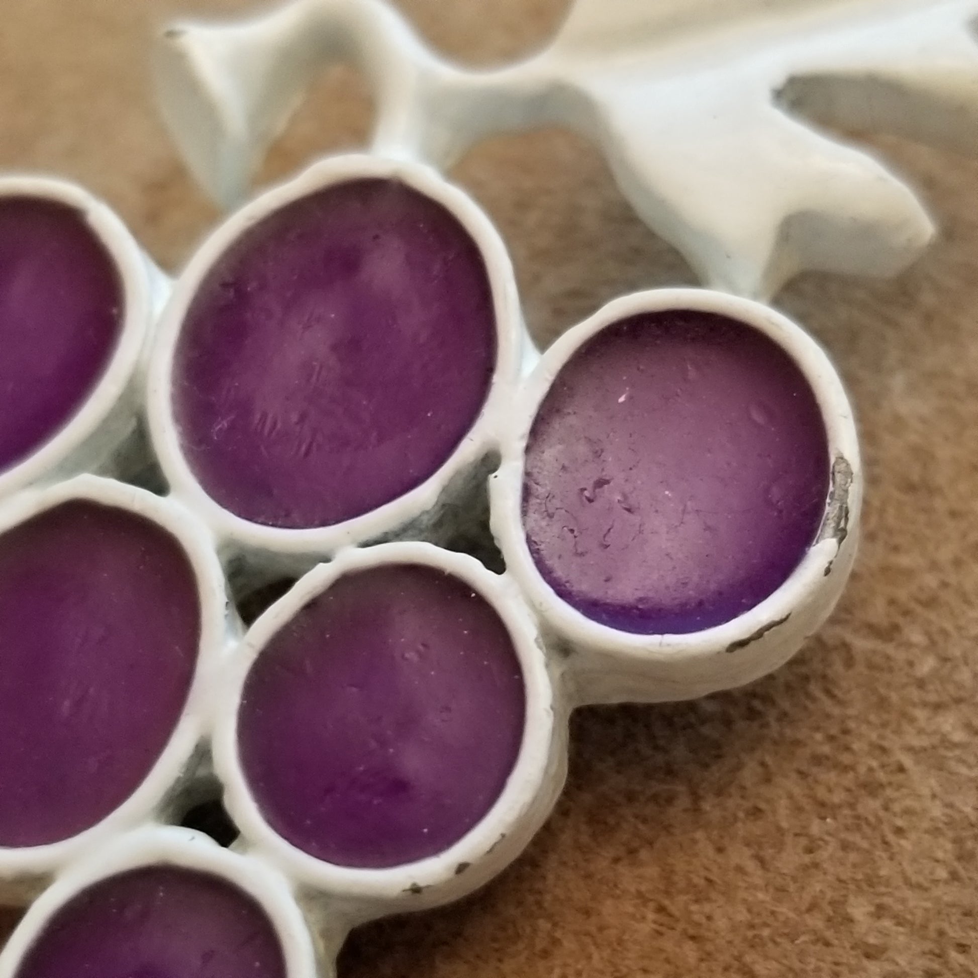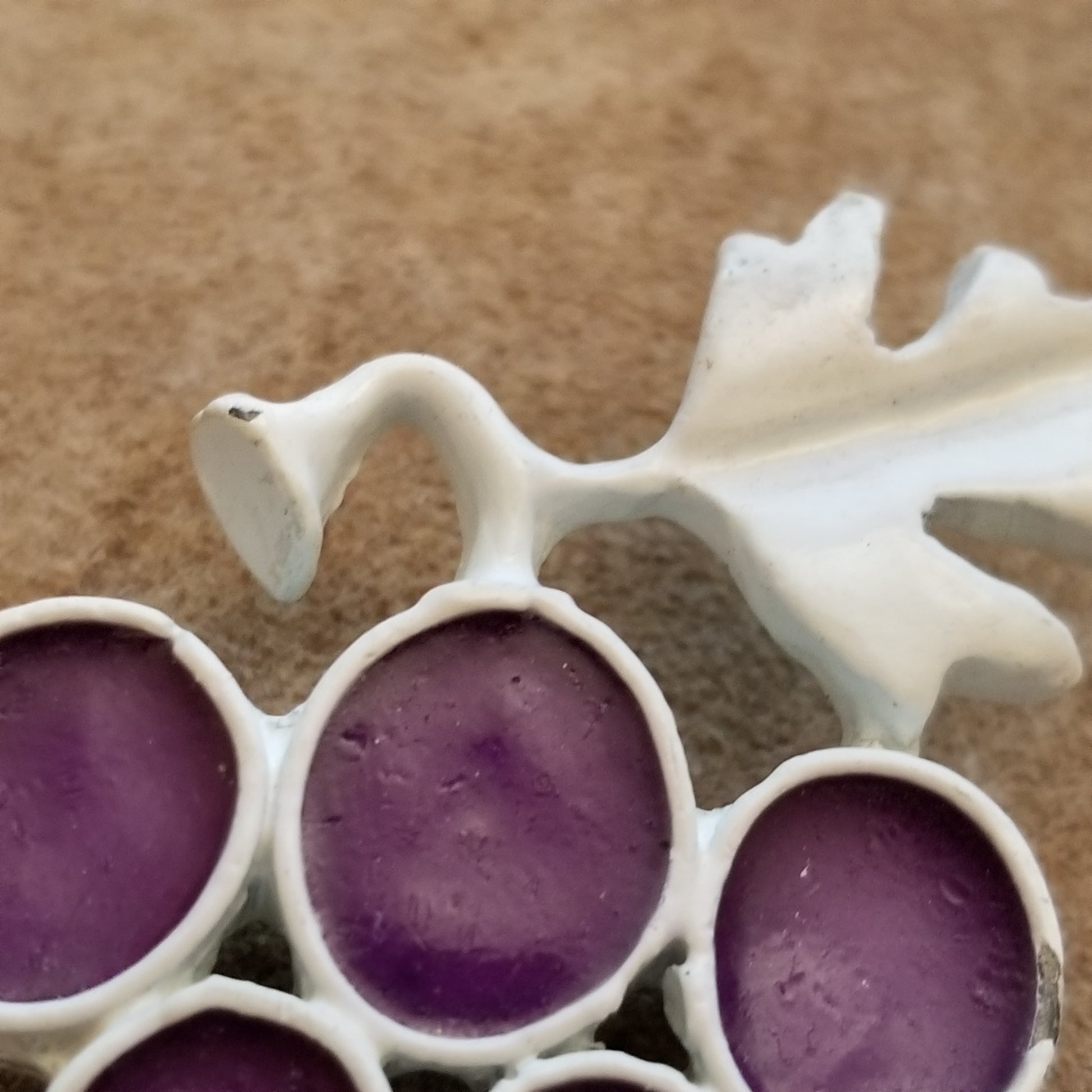 This vintage white metal grape brooch is the perfect way to add a touch of classic, timeless elegance to any look. Meticulously detailed with a sturdy metal construction, this brooch is sure to last for years to come. An ideal accessory for any occasion.