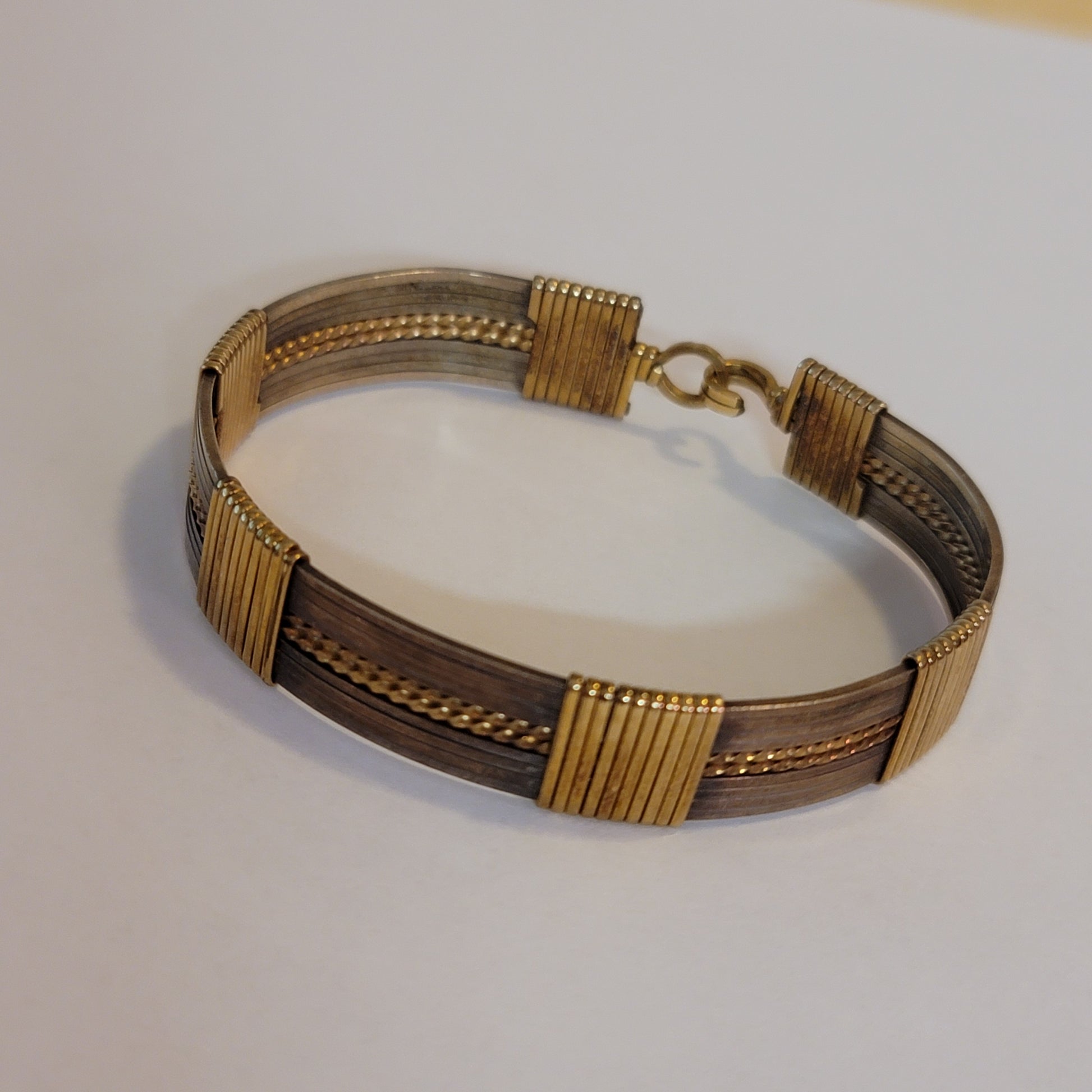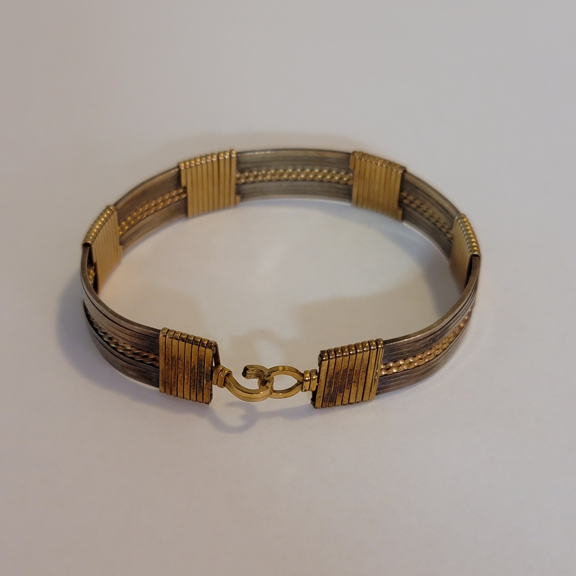 Hook and eye type clasp Looks to be made with copper wire. Will need some cleaning